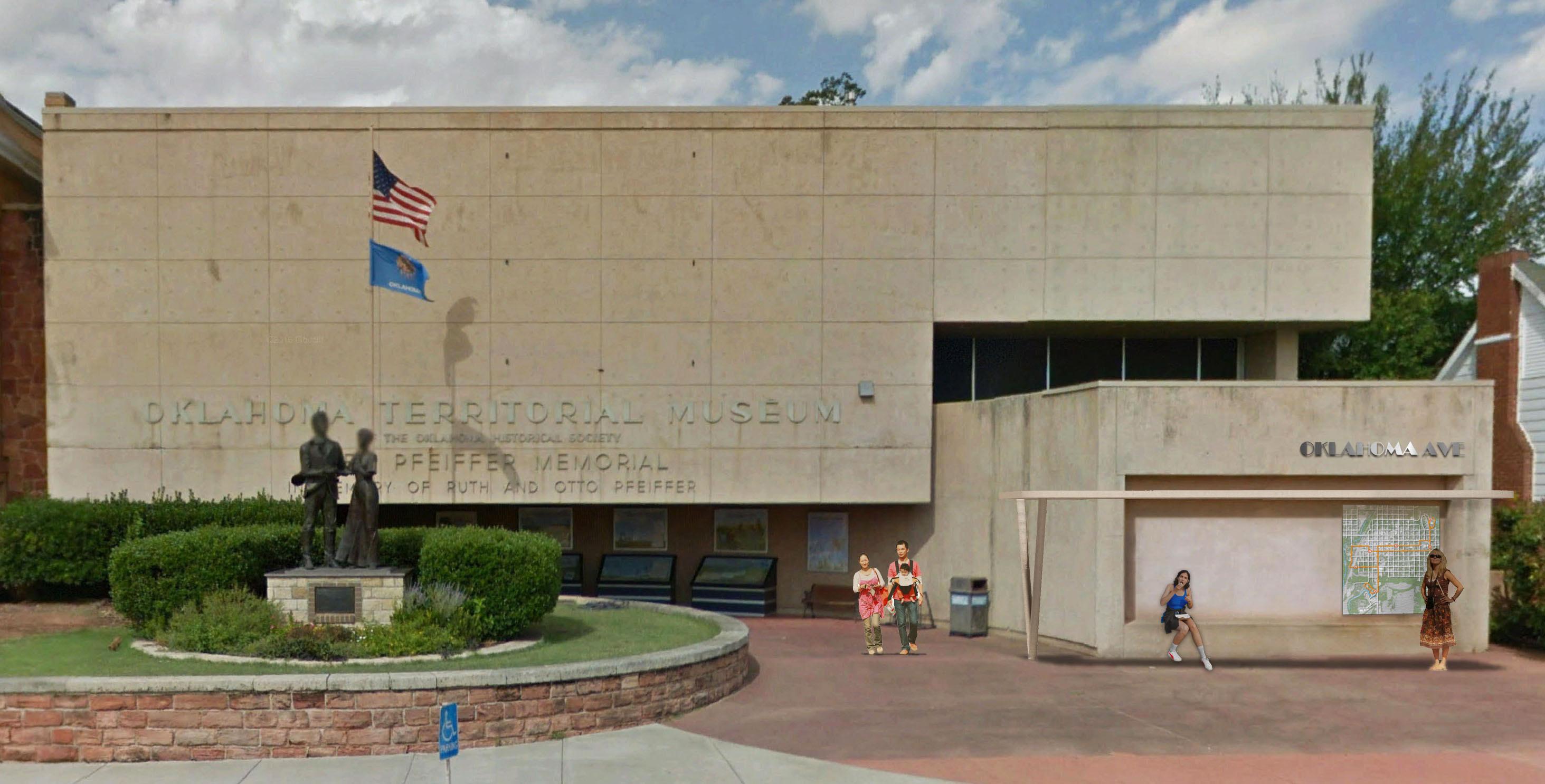 The Oklahoma Ave stop takes visitors to the Oklahoma Territorial Museum. As it is outside the historic district, the design highlights a different historic style from around Guthrie: mid-century modern architecture. This structure has sculptural concrete features, mid-century geometric forms and V-shaped supports. The elements take inspiration from Guthrie’s history beyond the Victorian aesthetic.