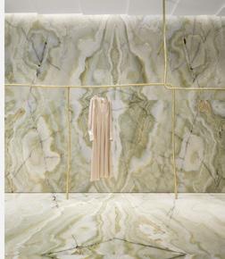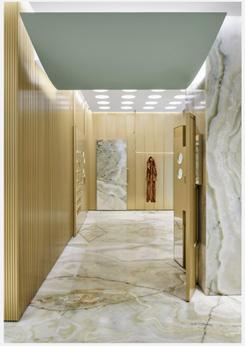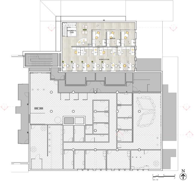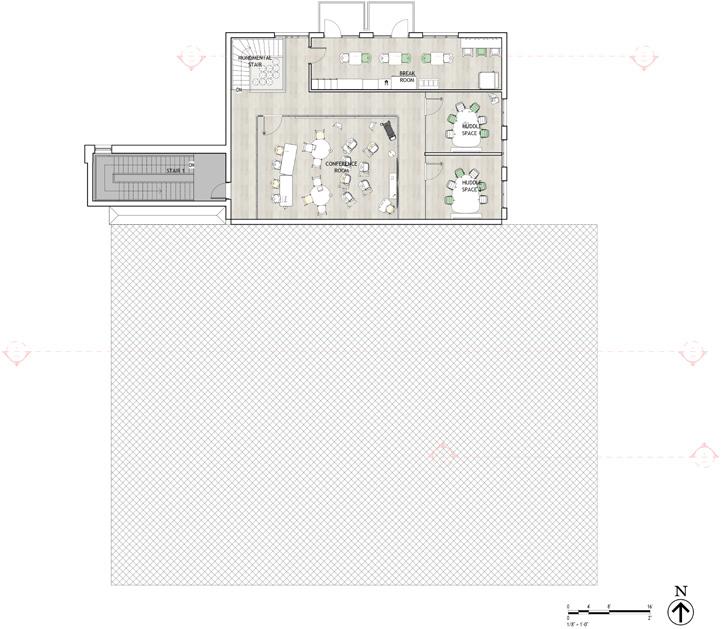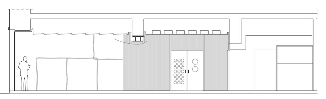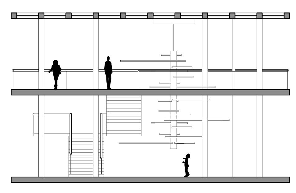 For this project, Giada Forte, a clothing boutique in Rome, was studied based on materiality and emphasis. The material palette in Giada Forte was minimal, with only bronze and green onyx materials. Because of this, emphasis was provided onto the clothing within the boutique. In addition, the program objects, such as the continuous bars for the clothing to hang on, continued to allow the clothing to be the focal point. Lastly, threshold was also studied within the boutique. A curved sage green ceiling feature was used within the threshold from the front to back of the building to allow a continuous transition from one space to the other. The hybrid drawing communicates the precedents within Giada Forte through applying materials to the floor plan and sections, as well as showing the program objects and the emphasis that they provide on the clothing.
