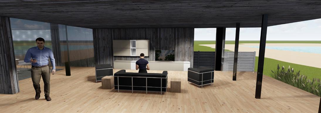 The design intention for this creative retreat is to establish an environment that emphasizes harmony between the interior and exterior spaces. To support this intention, the use of aperture through glass walls will provide the users with an uninterrupted view of the site. This design intention is relevant to the user because the user photographs landscapes at a large scale to provide insight into humanity’s living effects on nature. The use of exaggerated volumes