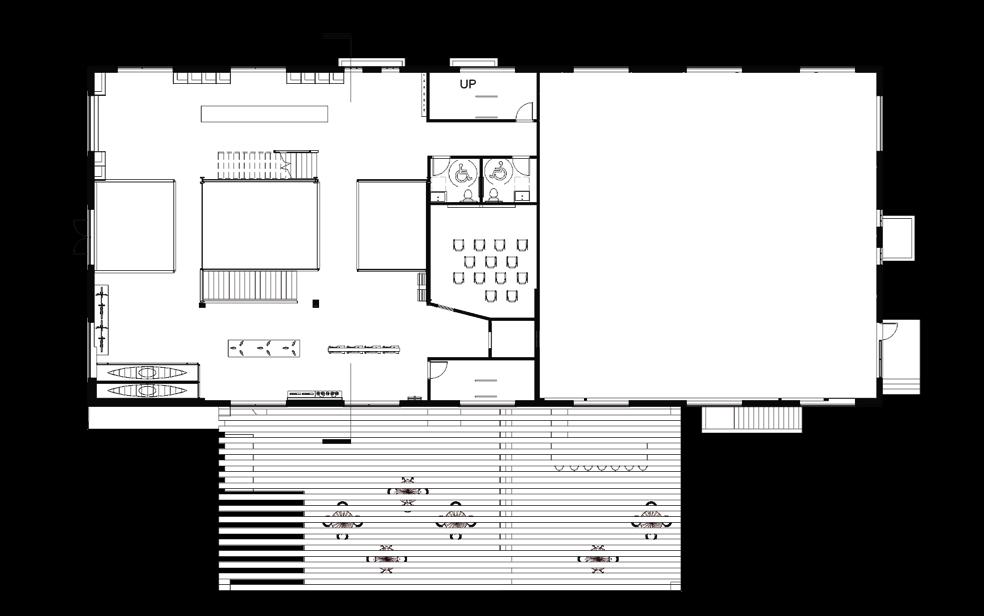 Rebrew & Vino is a coffee and wine bar that blends antique charm with sustainability, celebrating reclaimed materials in both design and decor. Centered around a square floor plan, the layout balances openness and intimacy, with communal spaces, private nooks, and a reclaimed-material bar as the focal point. Large front windows enhance light and openness, while enclosed seating areas toward the back create a cozy contrast, fostering both interaction and relaxation.