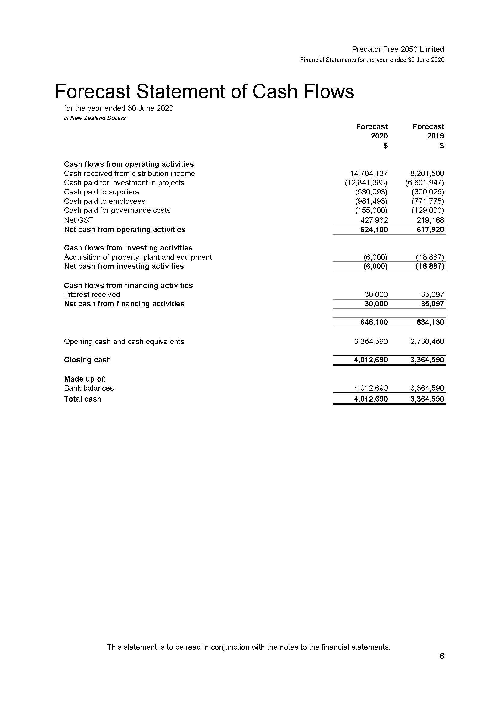 The forecast financial statements below include a forecast Statement of Comprehensive Revenue and Expenses, Statement of Financial Position, Statement of Changes in Equity and Statement of Cash Flows for the 2020 financial year.