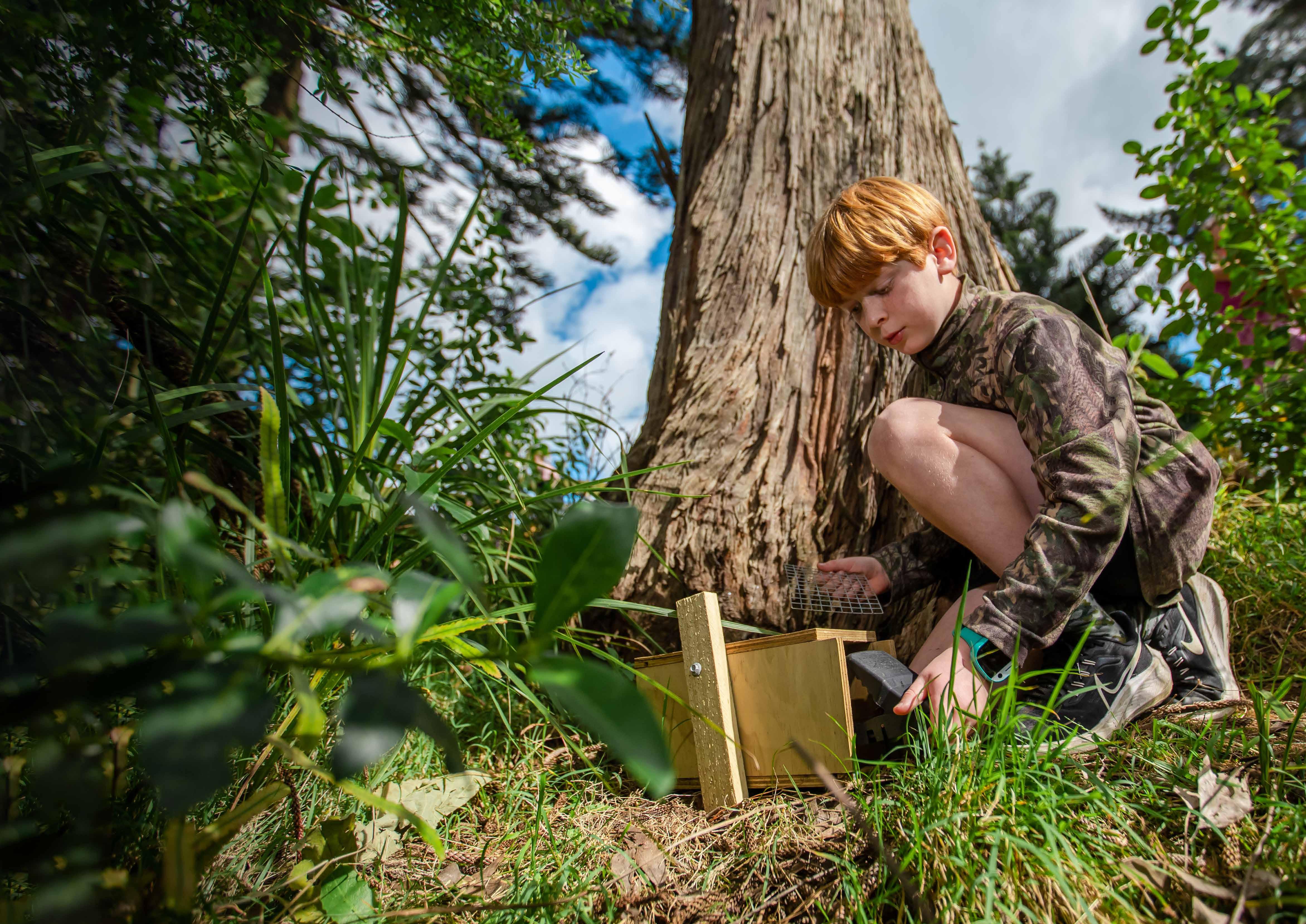 A young student from Mangorei School in New Plymouth checks a trap near the school where an urban Predator Free project is underway as part of the Towards Predator Free Taranaki project. One of the original aims of the project was to have one in five households with a trap in their backyard and this has now been accomplished, which highlights the enthusiasm of the community to be involved.