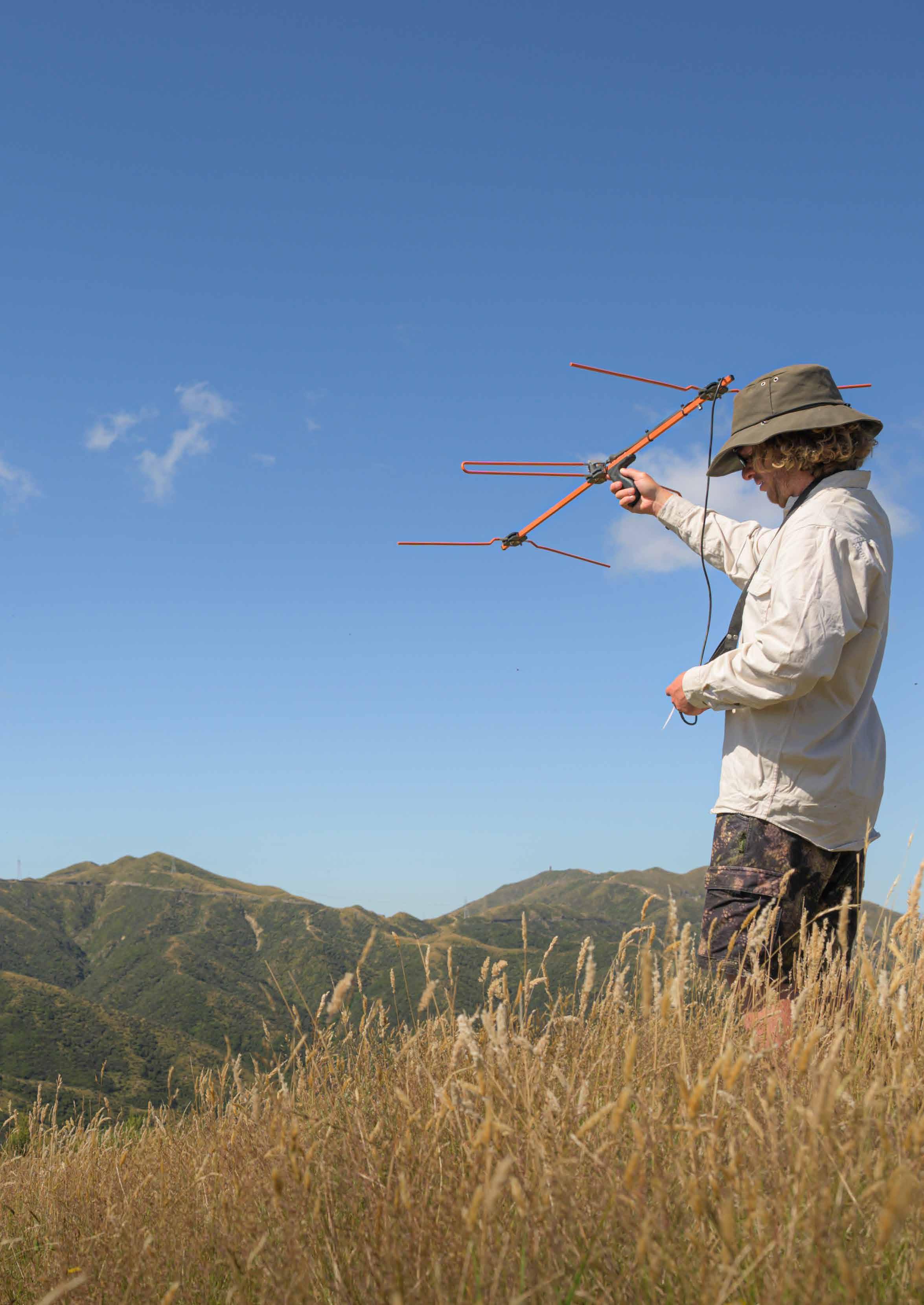 Front & back cover: As part of the Capital Kiwi project, a team member tracks a kiwi using VHF to determine its location and nesting status (males) based on the “beeps” received. Each tracked bird has its own frequency. The tracking is to monitor the kiwi population and to gauge post-release success to inform future reloactions.