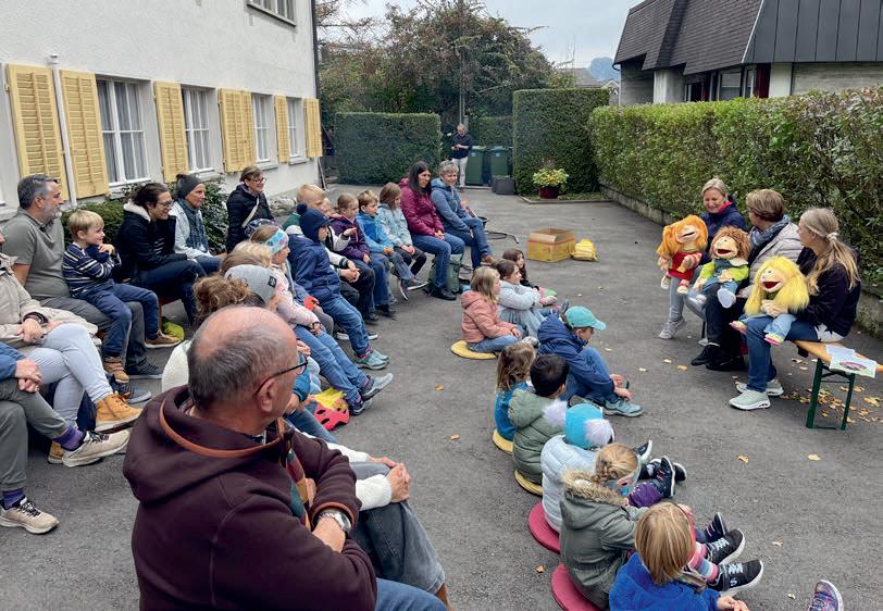 Besammlung Fackelträger und Kinder mit Laternen 19.10 Uhr, vor dem Schulhaus