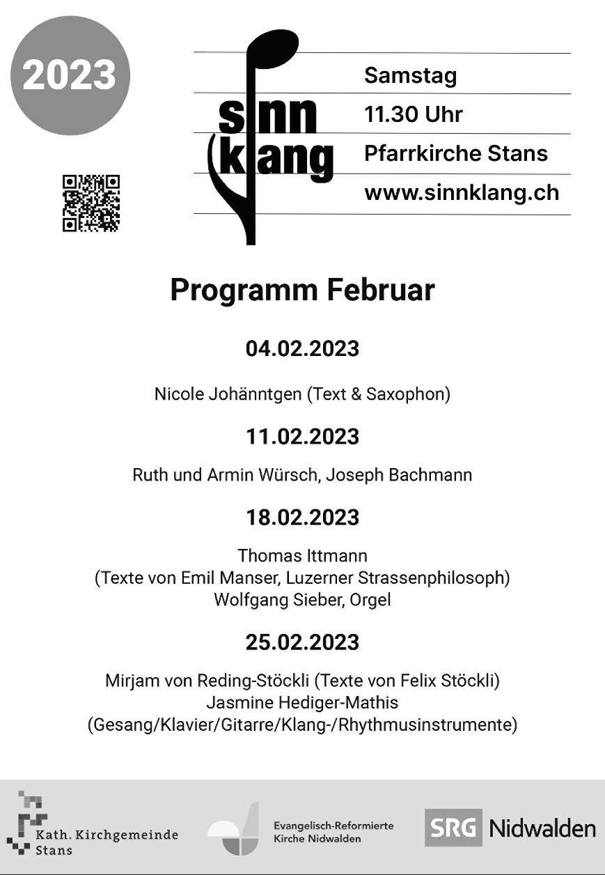 Sinnklang www.sinnklang.ch jeweils Samstag, 11.30 Uhr Pfarrkirche Stans 28.01.2023
