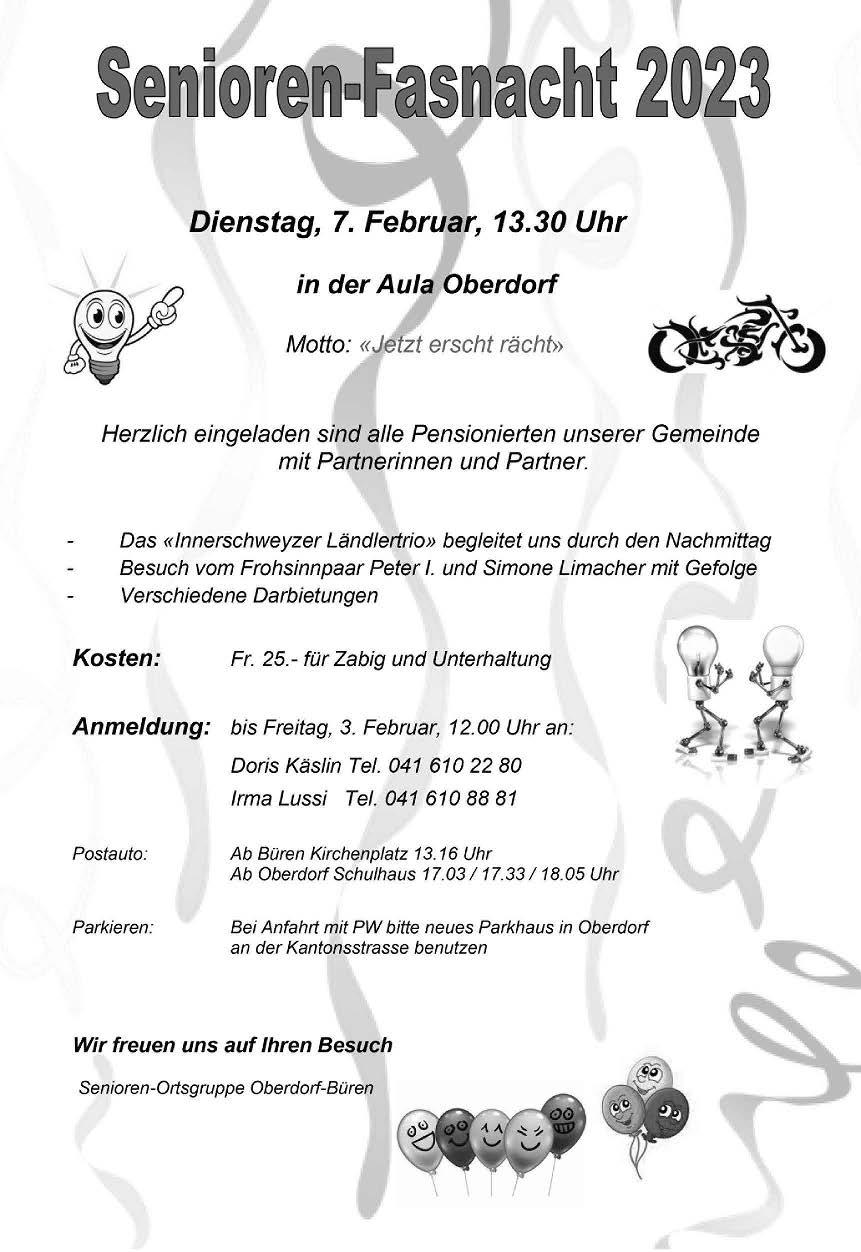 Anmeldung bis Freitag, 3. Februar an: Doris Käslin Tel. 041 610 22 80 Irma Lussi Tel. 041 610 88 81