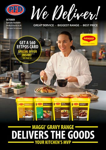 1 | Product Reference Guide NSW August 2022 PASTA,POULTRYPIESSEAFOODSMALLGOODSOILS&PASTIESNOODLES & SOUP PAPER, PACKAGING & PLASTICS ICE GRAINS,MEATCREAMSUGAR, NUTS & SPICES FRUIT & VEGETABLES FROZEN CHIPS DRINKS & BEVERAGES DAIRY & BREAKFASTCLEANINGCONDIMENTSEGGS& BISCUITS BAKERY PRODUCTS SNACK FOODS Frozen Vegetables For &conveniencequality small goods Smoked & processed meat specialists PaPer & Packaging For takeaway & storage solutions cakes Pre-cut & slab for great value meat Our fresh meat is 100% Australian grown seaFood Our fishmongers buy direct from the fishermen to ensure quality, freshness & choice Finger Food The largest range for takeawayfunctions,&dining cleaning Products Leading & exclusive brand products for the toughest jobs Fats & oils For frying,cooking,dressing&dipping Frozen Fish The largest range of seafood, fish & value added products from the sea grains Sugar, rice & flour condiments Sauces, gravies & boosters drinks& beVerages Hot, cold & sparkling including juices 12/04/12 4:05 PM INDEX We’ve got everything you need to make your business a success including an extensive range of fresh meat and seafood plus frozen foods, dry goods and paper products. If you are looking for centre of plate, function ideas, breakfast buffets or blackboard specials you’ll find everything in our warehouse listed in our Product Reference Guide and the latest products and offers in our We Deliver! monthly magazine. Plus you can now see all the products linked to your business when you order online. With online ordering you can see your price, save your pantry list, look at your purchasing history and pay your account. Go to www.pfdfoods.com.au for more details. MISCELLANEOUS NEW SOUTH WALES Account Numbers It would greatly assist us and reduce your time placing orders if you could quote your account number before placing your order. Next Day Delivery Please ask your PFD branch for order cut off times for the next day delivery and minimum order dollar value. Orders that do not reach the minimum order value may attract a delivery fee. Trading Terms Trading terms are nett. All monthly accounts are payable by the 15th of the following month (e.g. All June purchases are payable by the 15th July.) All ‘7 Day’ accounts are payable seven days from the invoice date. HOW TO ORDER Contact PFD Food Services on: Phone: 131 733 Order Online: www.pfdfoods.com.au Register: www.pfdfoods.com.au/sign-up