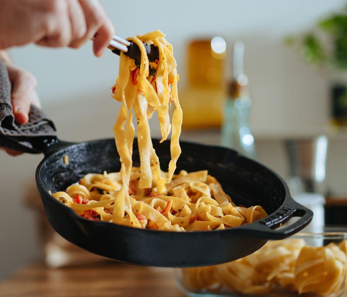 1. Cook the pasta in salted boiling water until al dente. Reserve up to 2 cups of the pasta water, then drain pasta and set aside.