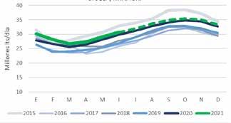 el 30 %. Afortunadamente llovió en buena parte del área pampeana durante agosto, con lo que la primavera 2021 arrancará normalmente con el aporte del pasto a las dietas de las vacas, quitándole tensión a la necesidad de suplementación. El nivel que se mantenga dependerá de la capacidad de compra de la leche.