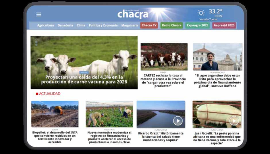 quista de nuevos formatos: la inmediatez de las redes sociales en 2010, la creación de Chacra TV como primer canal de noticias del sector y la implantación de Radio Chacra Digital. Hoy, esa red se potencia a través de alianzas estratégicas de alto impacto, como nuestra sección en Infobae y las emisiones diarias en Radio Continental.