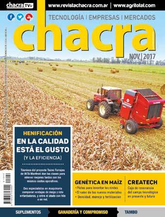 CHACRA & CAMPO MODERNO. Fundada en noviembre de 1930, es propiedad de The New Farm Company S.A., Francisco Narciso de Laprida 1481 - Vicente López, Buenos Aires, Argentina. Tel. 011-5353-5090 al 94; PUBLICACIÓN MENSUAL. Precio del ejemplar en todo el país: $ 300,00. Recargo por envío al interior: $ 16,00. SUSCRIPCIONES. En el exterior con franqueo vía aérea certificado. Países limítrofes (Bolivia, Brasil, Chile, Paraguay, y R. O. del Uruguay) y Perú: 1 año (12 números) USD 170 -Resto de América: USD 250- Europa: USD 270 - Asia, África y Oceanía: USD 270- Distribuidora en Capital Federal y Gran Buenos Aires: Huesca-Distribuidora de Publicaciones S.A., Aristóbulo del Valle 1556, Cap. Fed. Distribuidor en el interior del país: Transpres S.A., Isabel La Católica 1371, Cap. Fed. Registro Nacional de la Propiedad Intelectual 512 1483. Impresa en MARIANO MAS S.A. - México 649/651, San Telmo. Buenos Aires, Argentina - Teléfono: (+54 11) 4331-5764. Este medio se encuentra auditado por el Instituto Verificador de Circulaciones (IVC). PRINTED IN ARGENTINA. ISSN 0325-7932. Editor Responsable: RUBÉN O. BARTOLOMÉ. BUENOS AIRES - DICIEMBRE 2025 - AÑO 95 | EDICIÓN Nº 1141