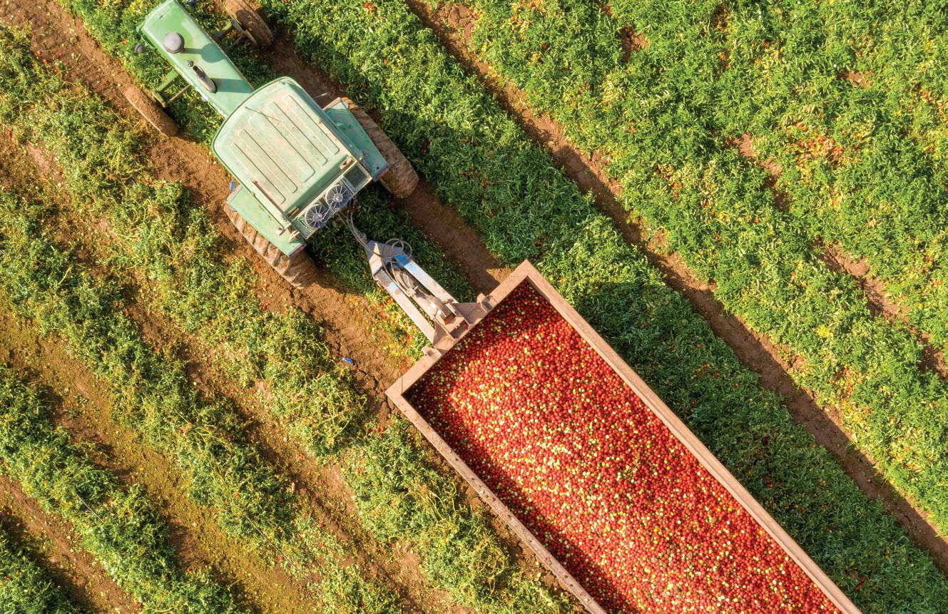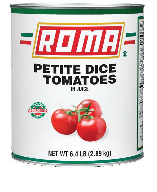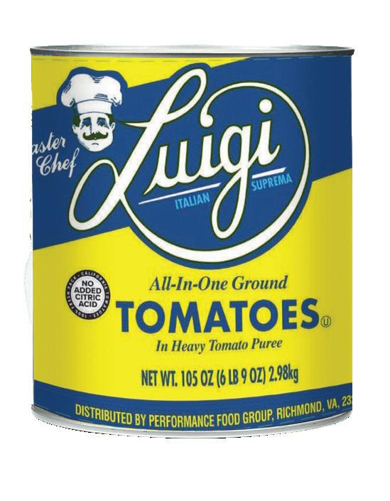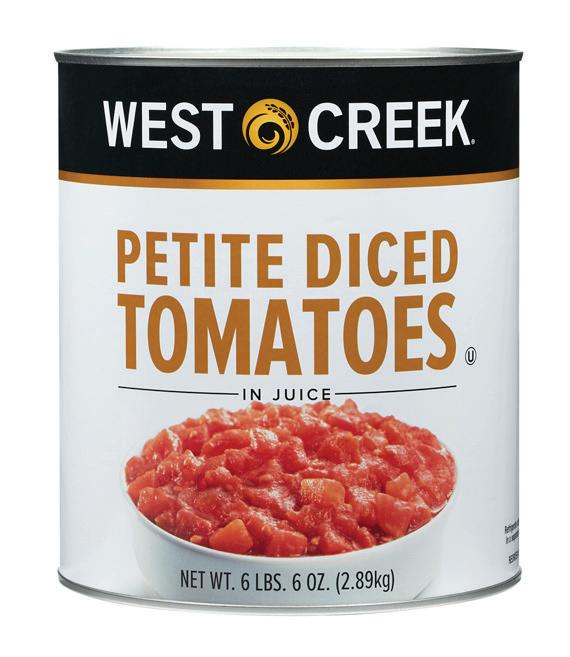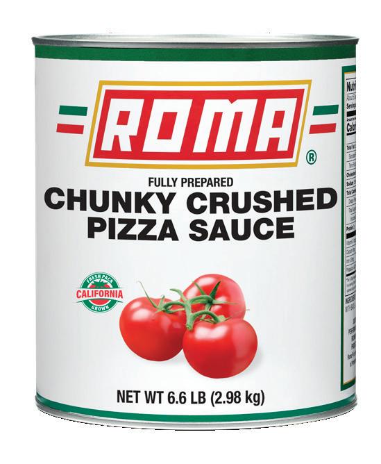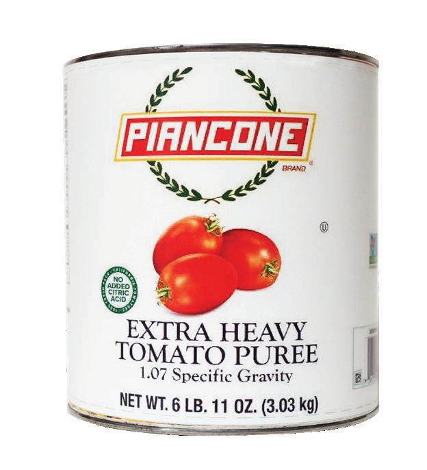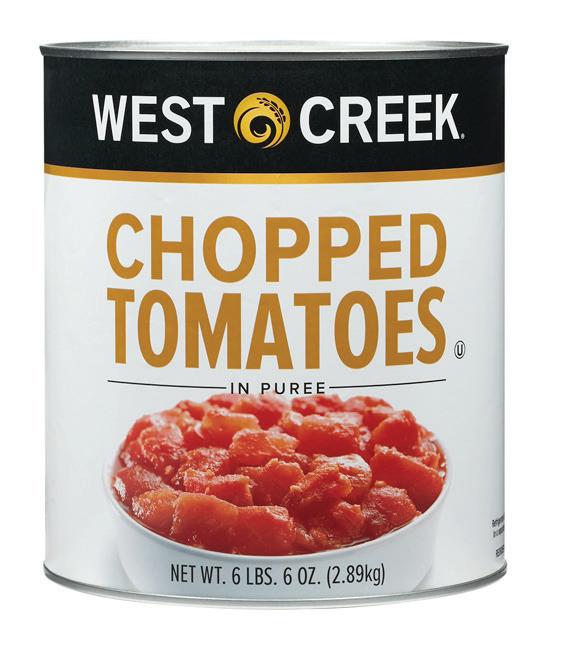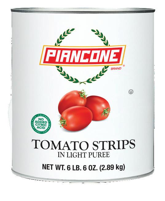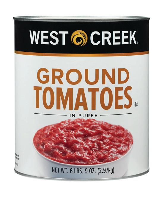 Tomatoes grown in California have higher amounts of solids (sugar, acids, salt) than those grown in the Midwest, Canada, and Italy. The higher solid count in California allows producers to craft a more diverse range of products, from quality pizza sauces, to allpurpose ground tomatoes, to peeled pear tomatoes in juice or purée. The higher solids in California tomatoes provide more structure and durability. When making sauce preparations, California tomatoes can endure a longer cook time because of this structure. Also, preparing a sauce using meat such as beef, pork, veal, or lamb will work well with the higher tomato solids. Pizza baked in a 500-degree oven will also perform well with California products.
