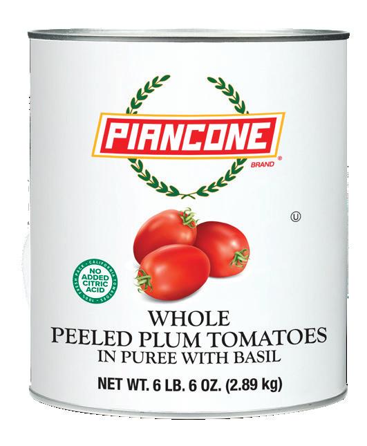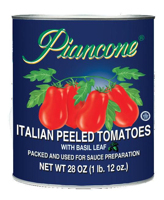 Within our premier Piancone brand, we offer whole peeled tomatoes with basil in juice, sourced from Italy, along with products canned in purée, which are sourced from both Italy and California. Our newest product — organic whole peeled tomatoes with organic basil in juice — is imported from Italy under our highest quality Piancone Epicureo brand. These authentic whole peeled tomato products are perfect for making pizza and pasta sauces.