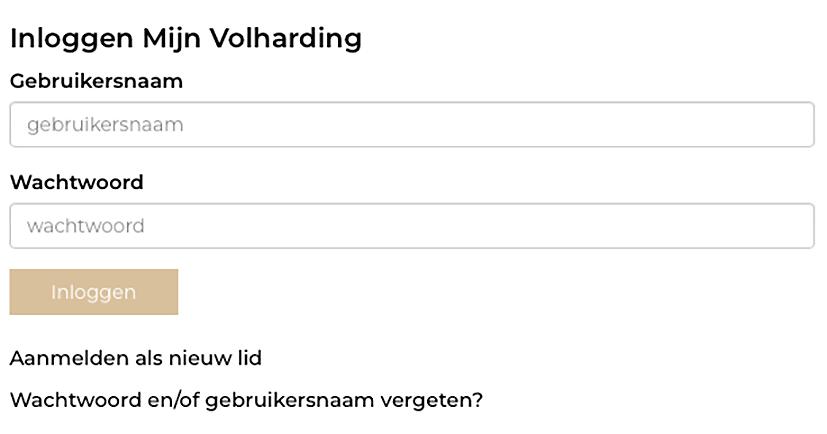 ➌ U komt nu op de inlog-pagina van Mijn Volharding. Als u uw wachtwoord en gebruikersnaam al heeft kunt u daarmee inloggen. Wanneer u ‘mijn Volhar ding’ wilt activeren, kiest u voor de link Wachtwoord en/of gebruikersnaam vergeten.