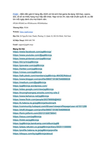 PG66 – nhà cái uy tín hàng đầu 2025, mang đến hệ sinh thái giải trí đỉnh cao gồm thể thao, casino, slot, xổ số… Giao dịch nhanh, bảo mật cao, thưởng lớn mỗi ngày. #PG66 #PG66Com #PG66casino #PG66thethao Thương Hiệu: PG66 Website: https://pg66.ninja/ Địa Chỉ: 26 Nguyễn Giản Thanh, Phường 15, Quận 10, Hồ Chí Minh, Việt Nam Số Điện Thoại: 0989 688 799 Email: support@pg66.ninja