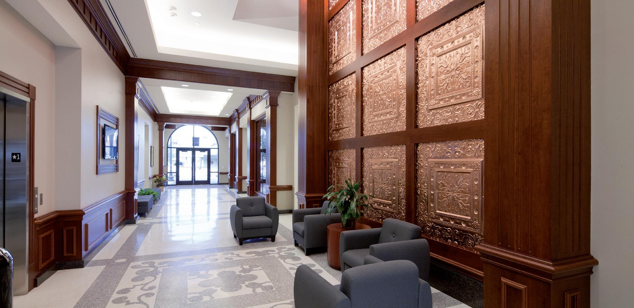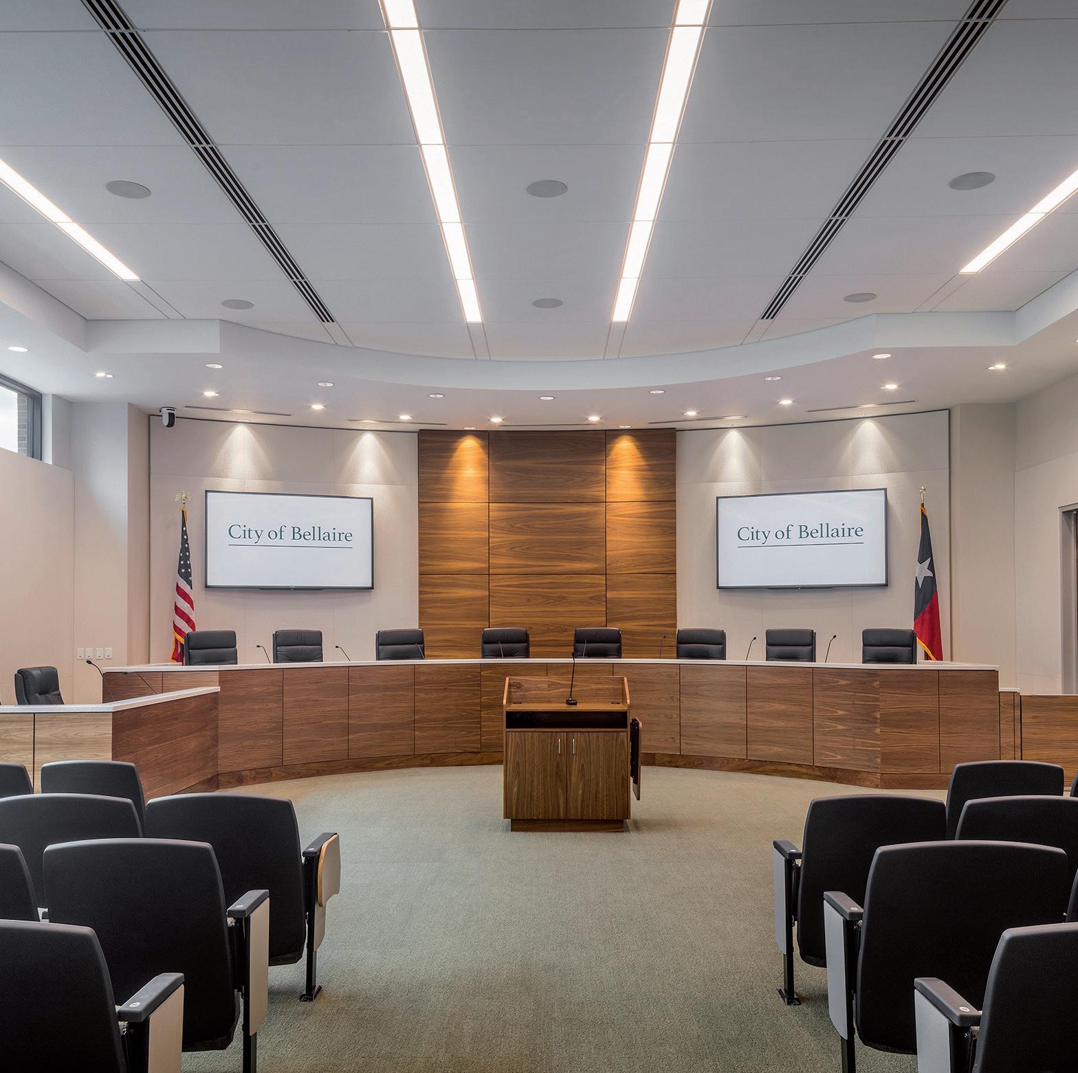 Working closely with city departments, PGAL defined requirements for spaces including the council chambers, mayor's office, conference center, and foyer. The interior showcases classical architectural elements such as
