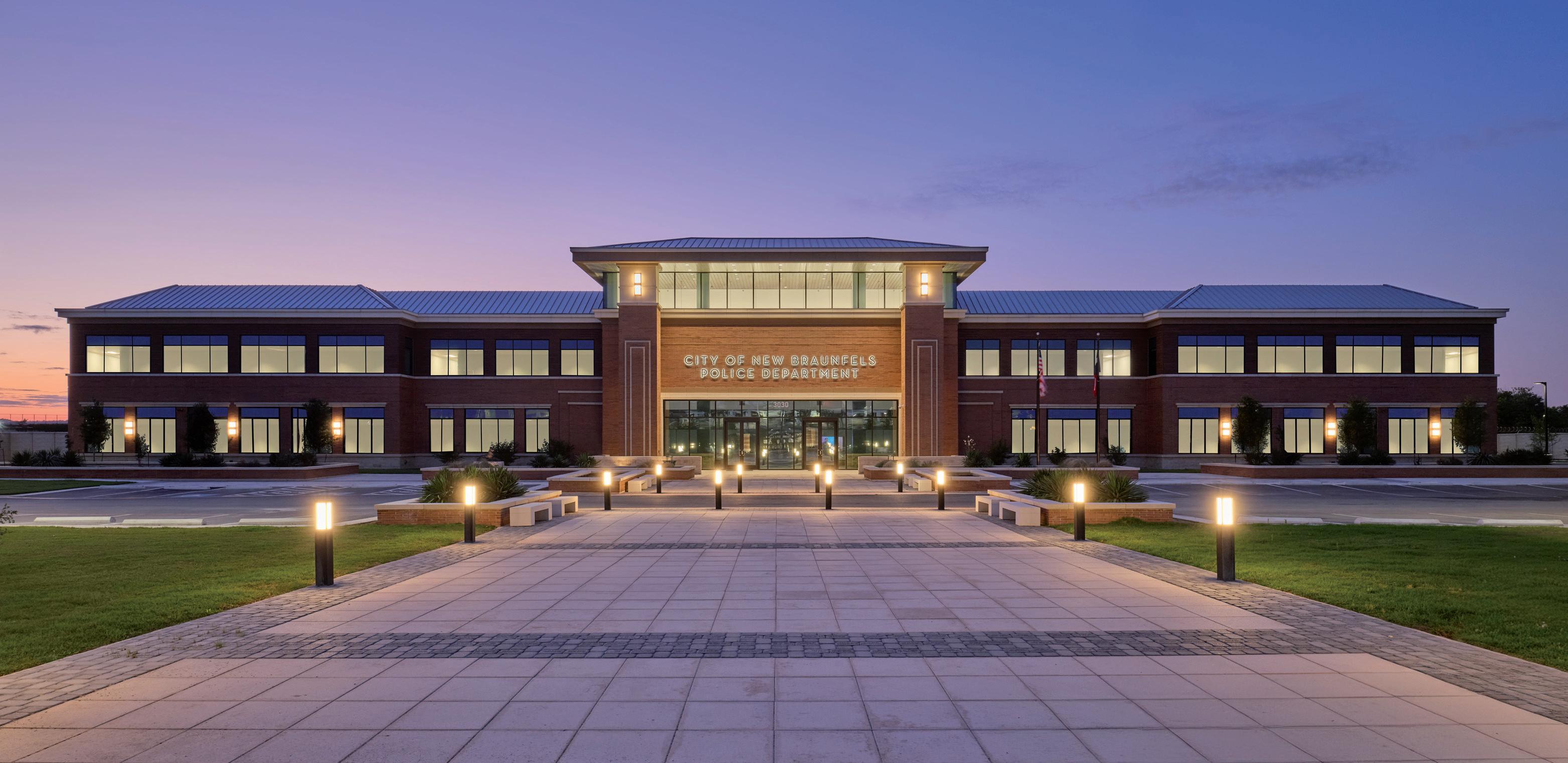 PGAL partnered with the City of New Braunfels to deliver master planning, programming, and design services for a new two-building police headquarters. The 62,285-square-foot main building features a welcoming, two-story lobby that visually connects both levels and enhances wayfinding.