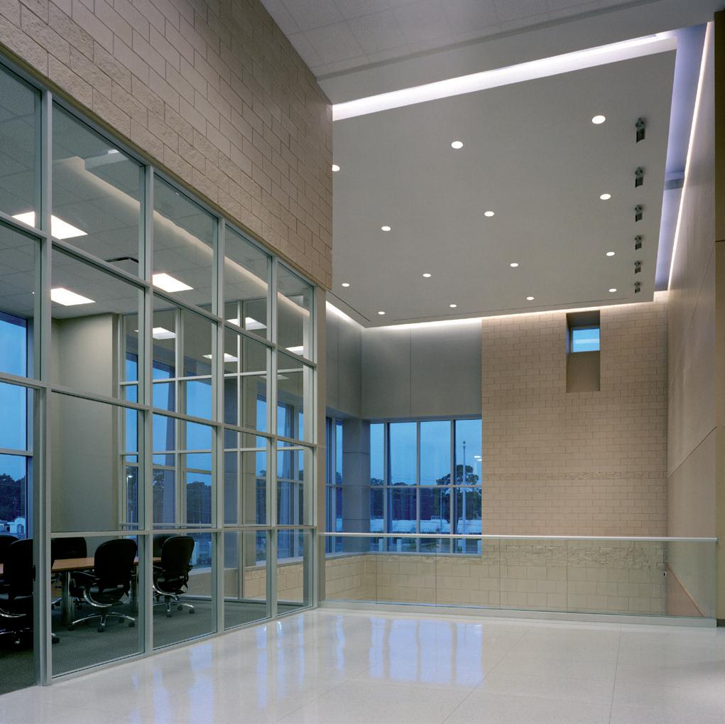 Sustainable features include east-west building orientation, rainwater harvesting, high-efficiency HVAC systems, shaded and high-performance glazing, waterefficient fixtures, and reflective roof surfaces.