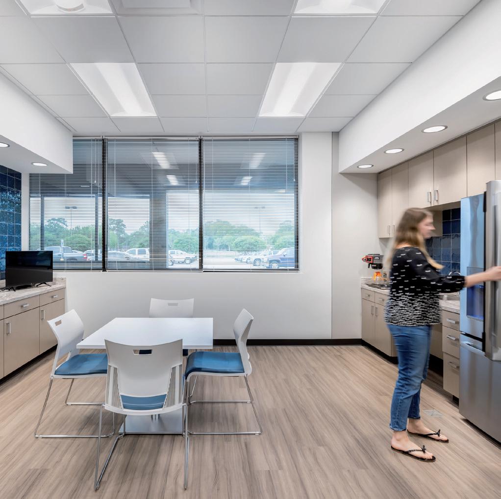 Support areas and staff offices were also redesigned to improve circulation and workplace functionality. Carefully selected finishes and the integration of glass partitions contribute to a contemporary yet timeless setting.