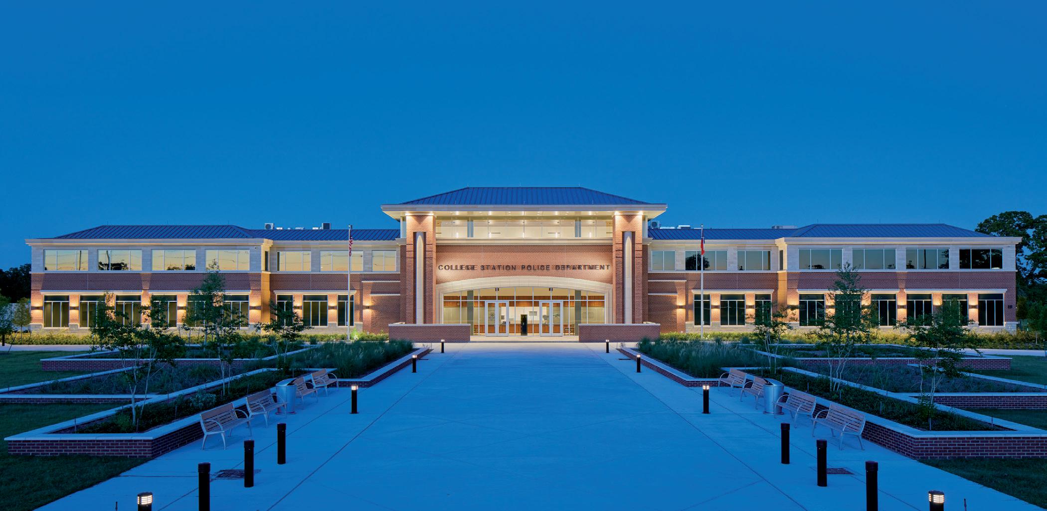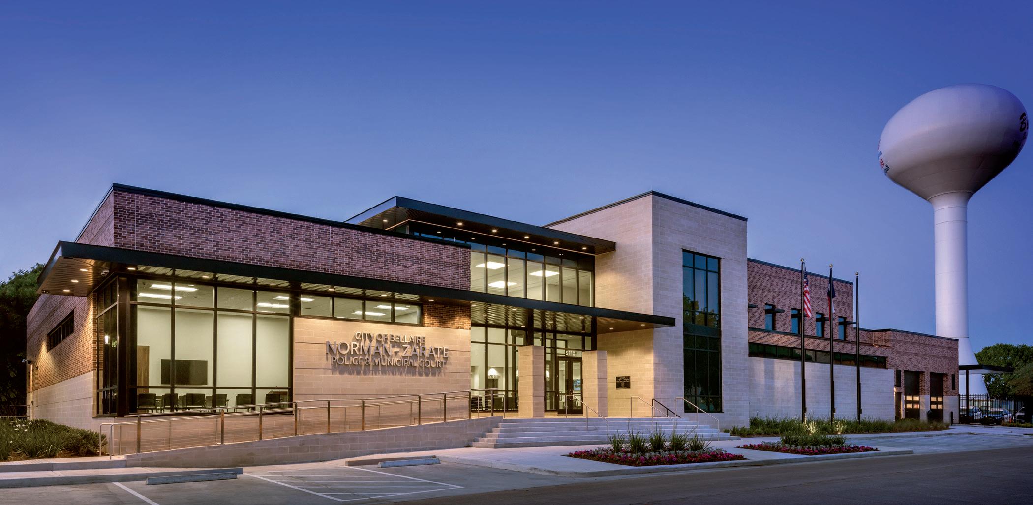 The facility houses city administration, public works, municipal courts, and the police department. PGAL's scope included master planning, programming, bond referendum support, and full design services for the complex and adjacent streetscape.
