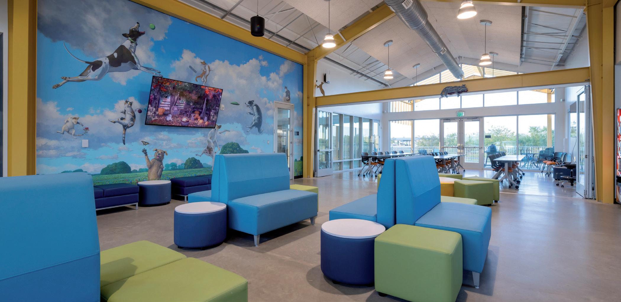 Animal control operations are housed in a dedicated building with 12 indoor/outdoor dog kennels, a secure dog run, a feline ward, exam and treatment rooms, and a public-facing adoption center.
