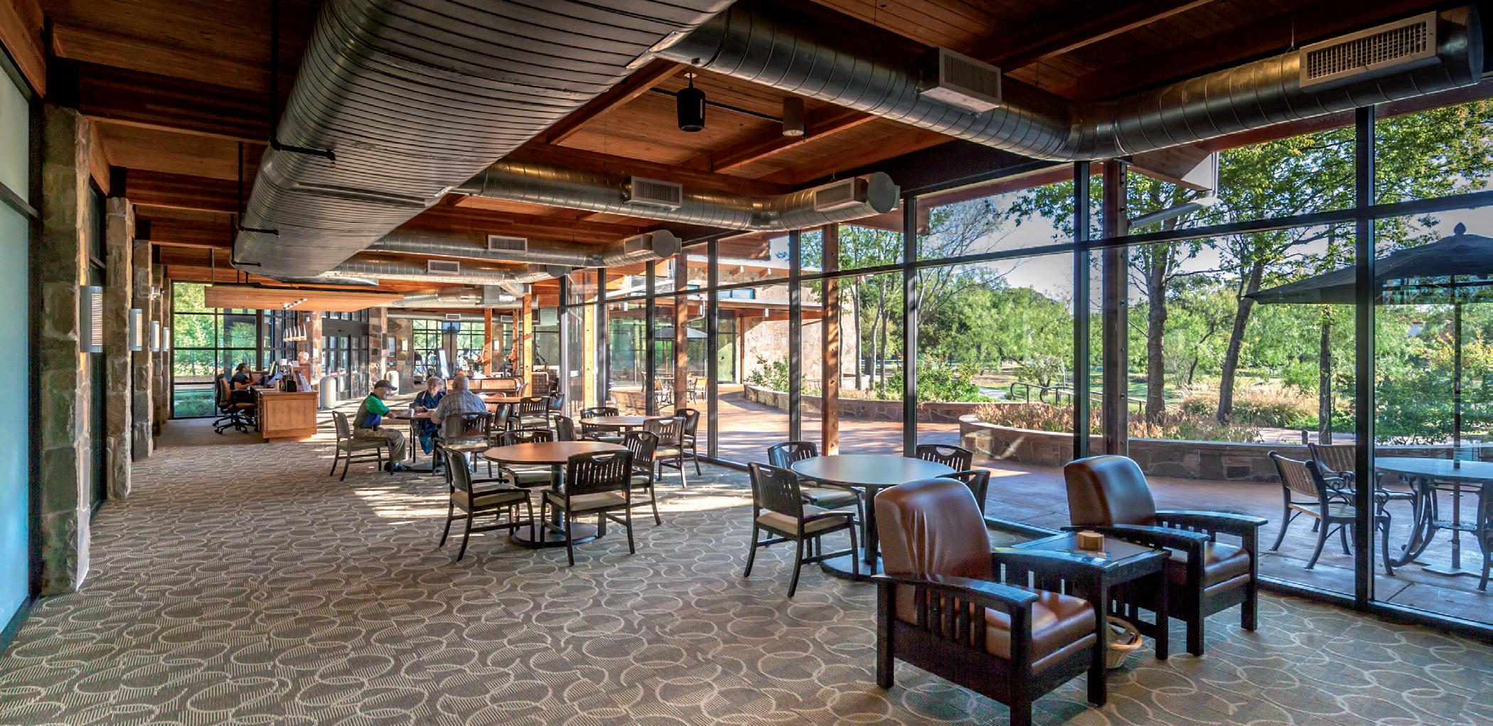 Serving as a civic gateway along Highway 29, the Joann Cole Mitte Memorial Library anchors downtown Bertram with a welcoming, 8,550-square-foot facility. The library includes a public meeting room, a coffee shop, adult and teen areas, a children’s library, and staff and support spaces. Naturally lit from raised clerestory windows, the interior provides comfortable seating, study areas, computer stations, and wireless access.