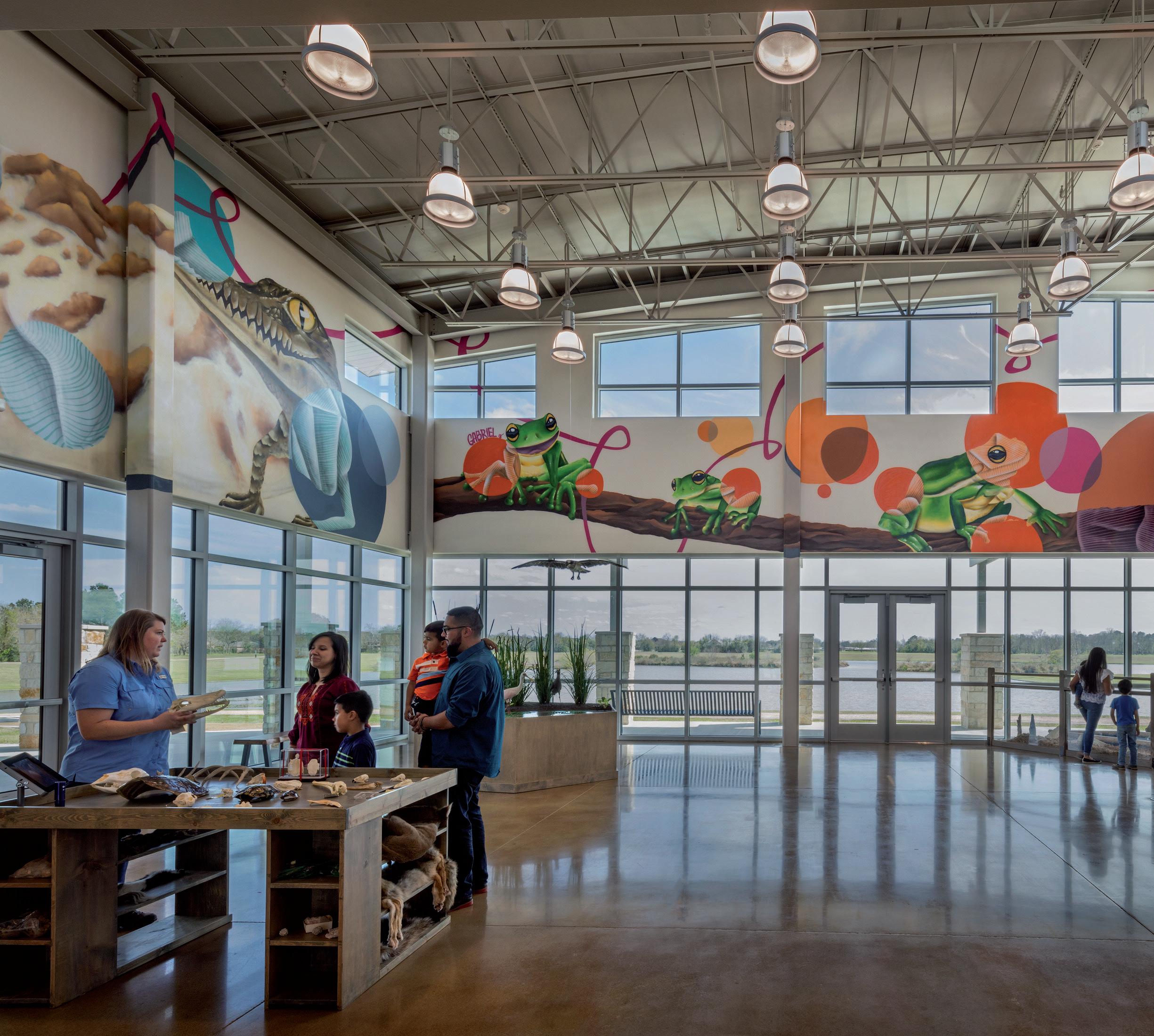 Part of a larger municipal complex that includes the city's recycling center and water treatment plant, the Delores Fenwick Nature Center provides a hands-on environment for environmental education and outdoor learning. Designed to serve all ages, the 6,000-square-foot facility features panoramic views of adjacent wetlands, immersive exhibits, interactive bio-fact stations, and a flexible classroom for up to 50 guests.