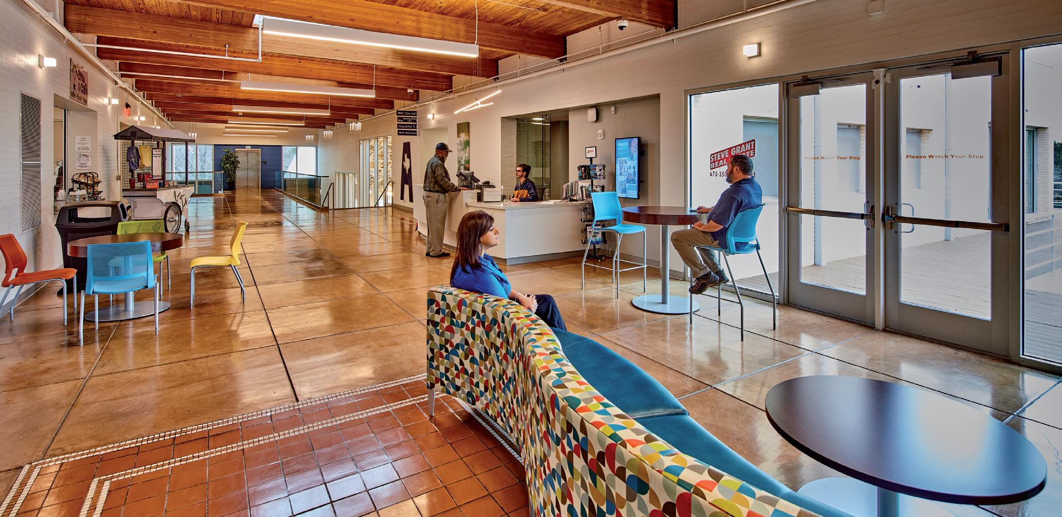 To better serve the Irving community, this aging recreation center underwent a thoughtful renovation that prioritizes transparency, functionality, and user experience. PGAL reimagined the building's entry sequence with a transparent front desk and added a second-story observation window overlooking the entrance and fitness areas.