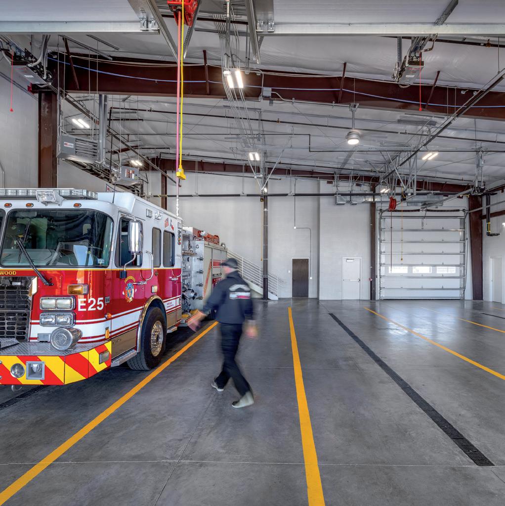 Support areas and decontamination zones separate gear and apparatus bays from living spaces, enhancing health and safety. The new station, set against the backdrop of a growing neighborhood and nearby sunflower fields, not only improves response times but also supports community connection.