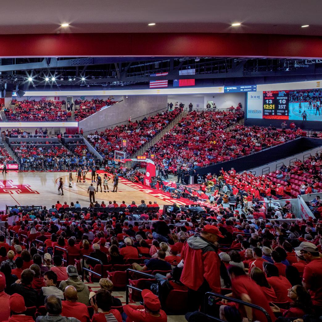 A dramatic re-visioning of the University of Houston Basketball Arena transformed the arena into a state-ofthe-art D1 collegiate sports facility.
