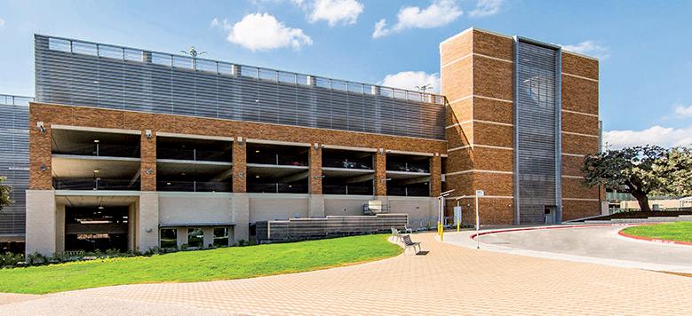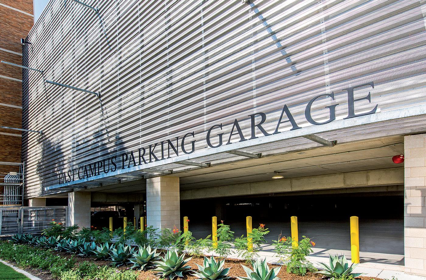 Designed with a 2,000-car capacity and approximately 725,000 square feet, the East Campus Parking Garage was constructed in two phases. The six-level, cast-inplace post-tensioned concrete structure includes one level below grade and five above and provides parking for students, faculty, staff, event patrons, and visitors on the east side of the University of Texas Campus.