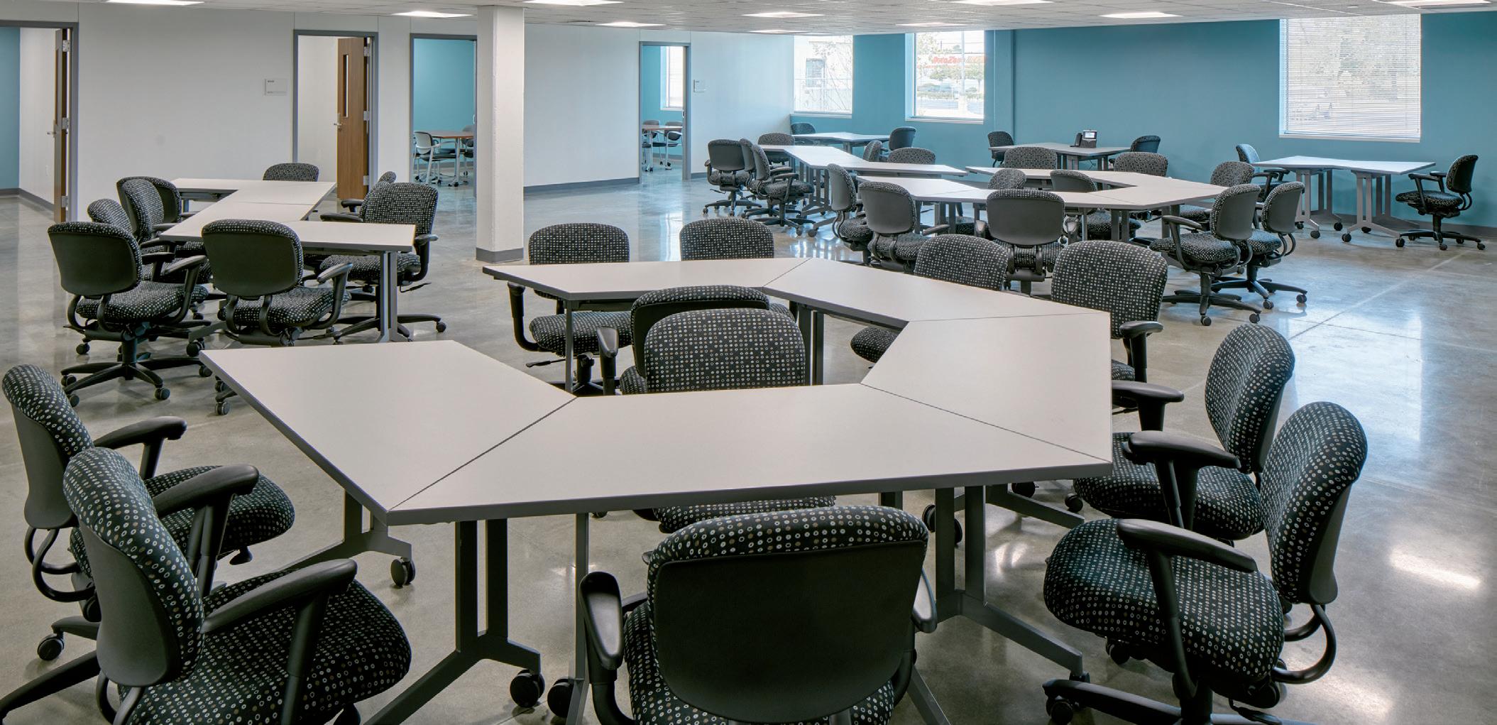 The renovation provides training labs for welding, plumbing/pipe fitting, electrical, and HVAC studies. Conventional classrooms in combination with collaborative learning areas and student amenities support the training labs. In addition to a complete refurbishment of the interior, including all new MEP systems, the building exterior received a new roof and roof structure, replacement windows and doors, new covered entry, and