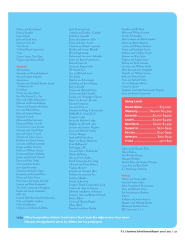 Errol Train Giordano Christine and Michael Golabek Dominick Gonnella Elaine and Anthony Grillo JoAnn and Alan Hansen Christine and Klaus Hasenbein Deirdre and Edward Hatfield Haven Engineering Barbara and Lawrence Hollander Karen and Robert Iannaccone Deborah Ingersoll Susan and Angelo Intile JD Shehadi LLC Lori and Richard Kariss Neil Kazan Heather and John Kerner Geraldine and Kevin Kilgore Judy A. Koepff Elayne and Michael Kohner Carolyn and John Kowalik Lindsay and Christopher Kramer Karen and Robert Laferriere Lakeside Carpentry Ann and Seth Leeb Elizabeth and Paige L’Hommedieu LIREMACC Partners LLC Margaret Lodge Susan and Matthew Lodge Meghan and Richard Lyon Suzanne and Michael Maguire Lacey and Matthew Malloy Thomas Mangan Sarah and Michael Mars Helen and David McCarthy Ryan McDermott McGuggan, LLC Joan and Robert McKeracher Wendy McWeeny Julia and Pavan Mehta Merck Partnership for Giving Adrienne and Kevin Monaco Virginia Moriarty Jennifer and Frederick Moss Multipet International Inc. Kathleen Murphy Mutual of America Joseph A. Natoli Construction Corp. Sandra and Gregory Niccolai Palriwala Foundation of America Maryann Panei and Kenneth Branch Patricia Pelton Carol and Thomas Pugsley Eileen Quick Meredith and Jason Roelke