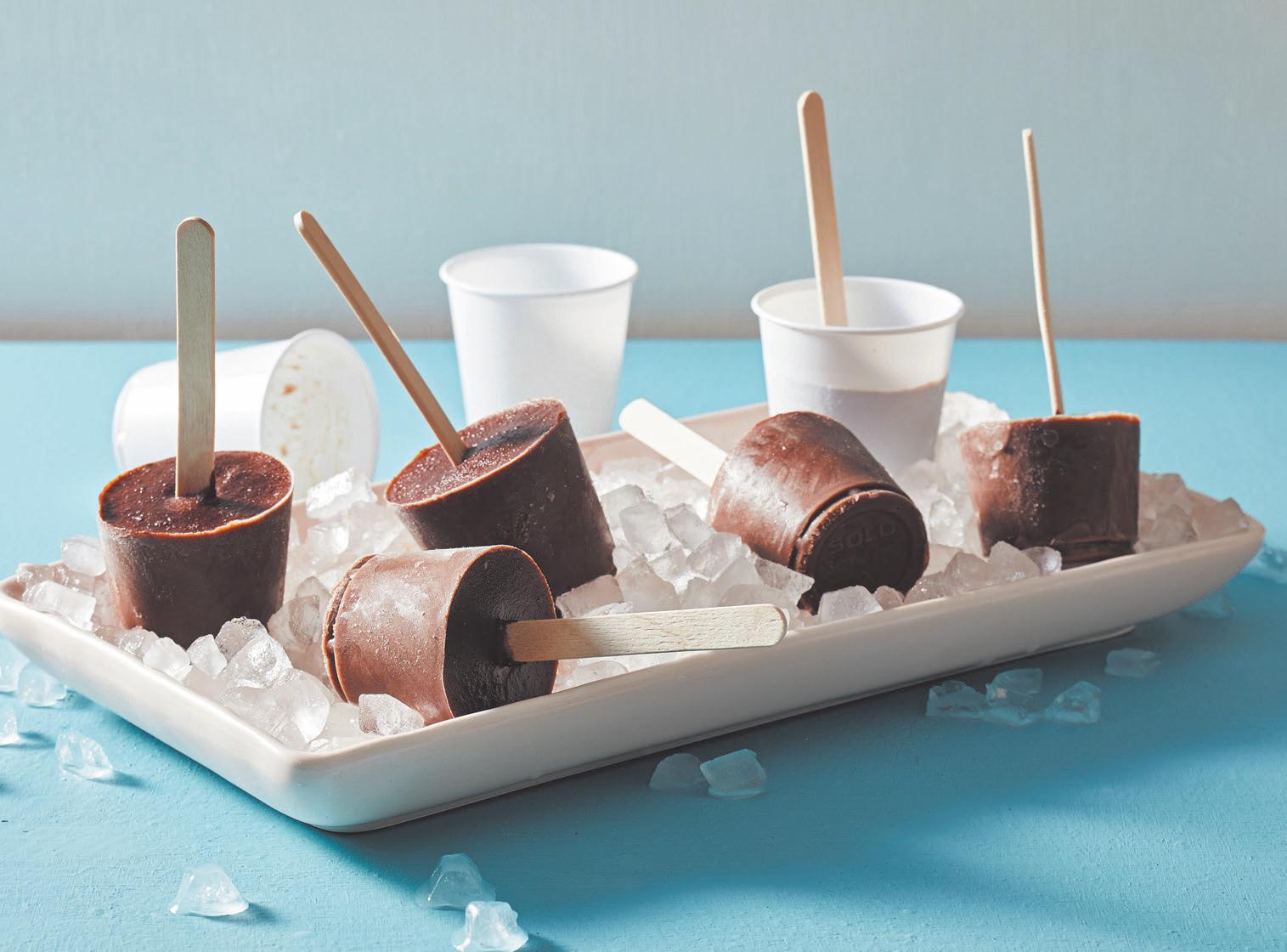 One of those pleasures is the refreshment of a frosty popsicle on a hot afternoon. I remember my mom used to put orange juice into paper cup pop molds and freeze them for us, and I loved those. But it was the occasional splurge on the package of chocolate pops that really excited me.