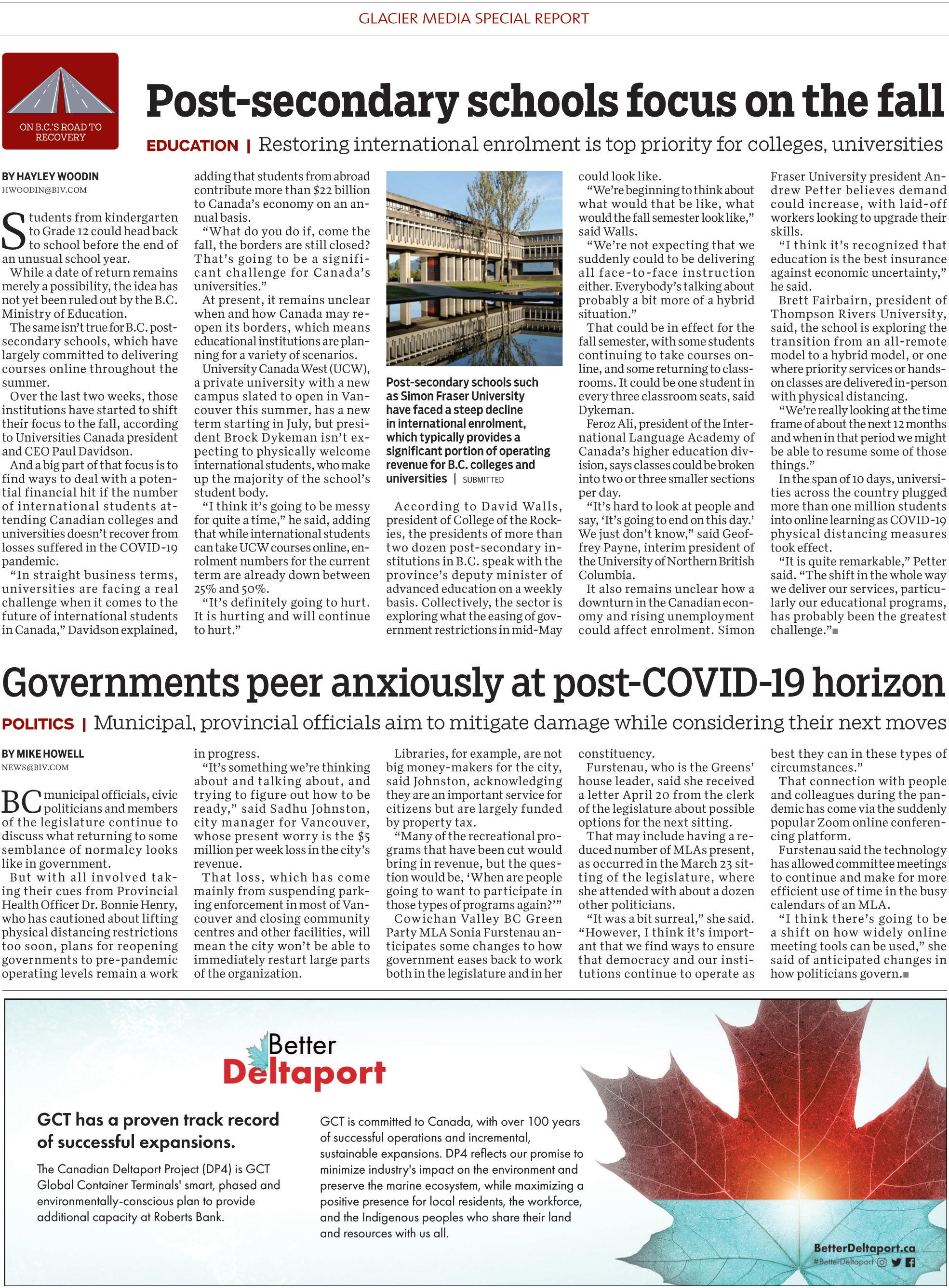 “none of us can go out and right now so we eat our meals in the room,” she said. More than half of the 2,500 people who have died from coViD-19 in canada were residents of seniors facilities. in B.c., 20 seniors home facilities currently have active outbreaks, while 11 other clusters at care-home facilities have been declared over. none of those affected facilities are in the northern Health region and the chateau and its residents have been following strict measures since March 23 to keep it that way.