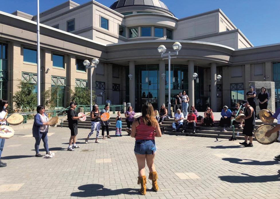 Family and friends drum for Alexander Joseph during the fourth day of the inquest at the Prince George Courthouse