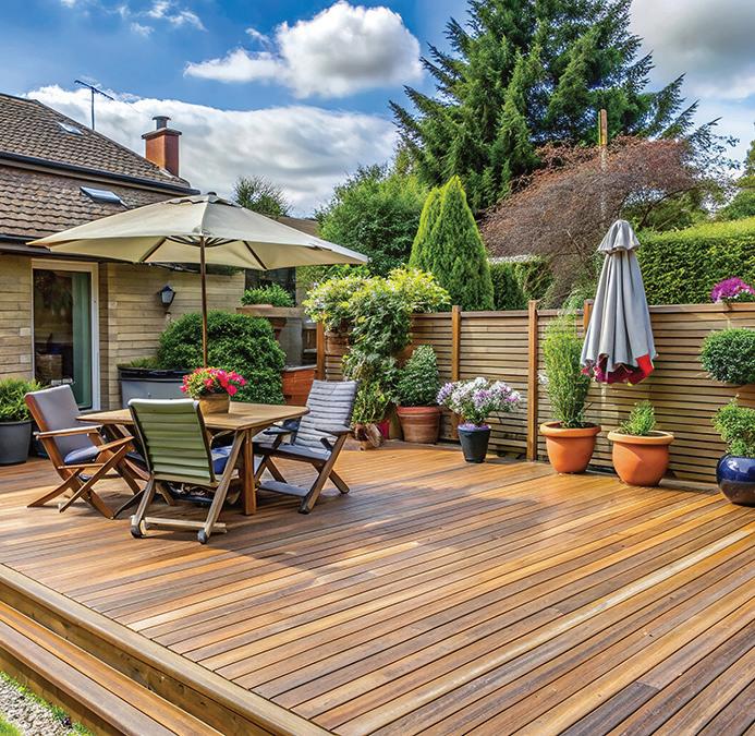 • Composite: Made from a mix of wood fibers and plastic, composite decking is lowmaintenance, resistant to rot, and available in a variety of colors and textures. It is generally more expensive than wood but offers longevity and ease of care.