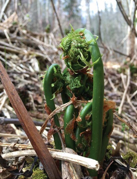 PHOTO LEFT: One of the great culinary springtime treasures of our region is fiddleheads! Ostrich ferns are a tasty treasure to seek throughout our forests, before the mosquitos show up! But be sure to cook them first.PHOTO
