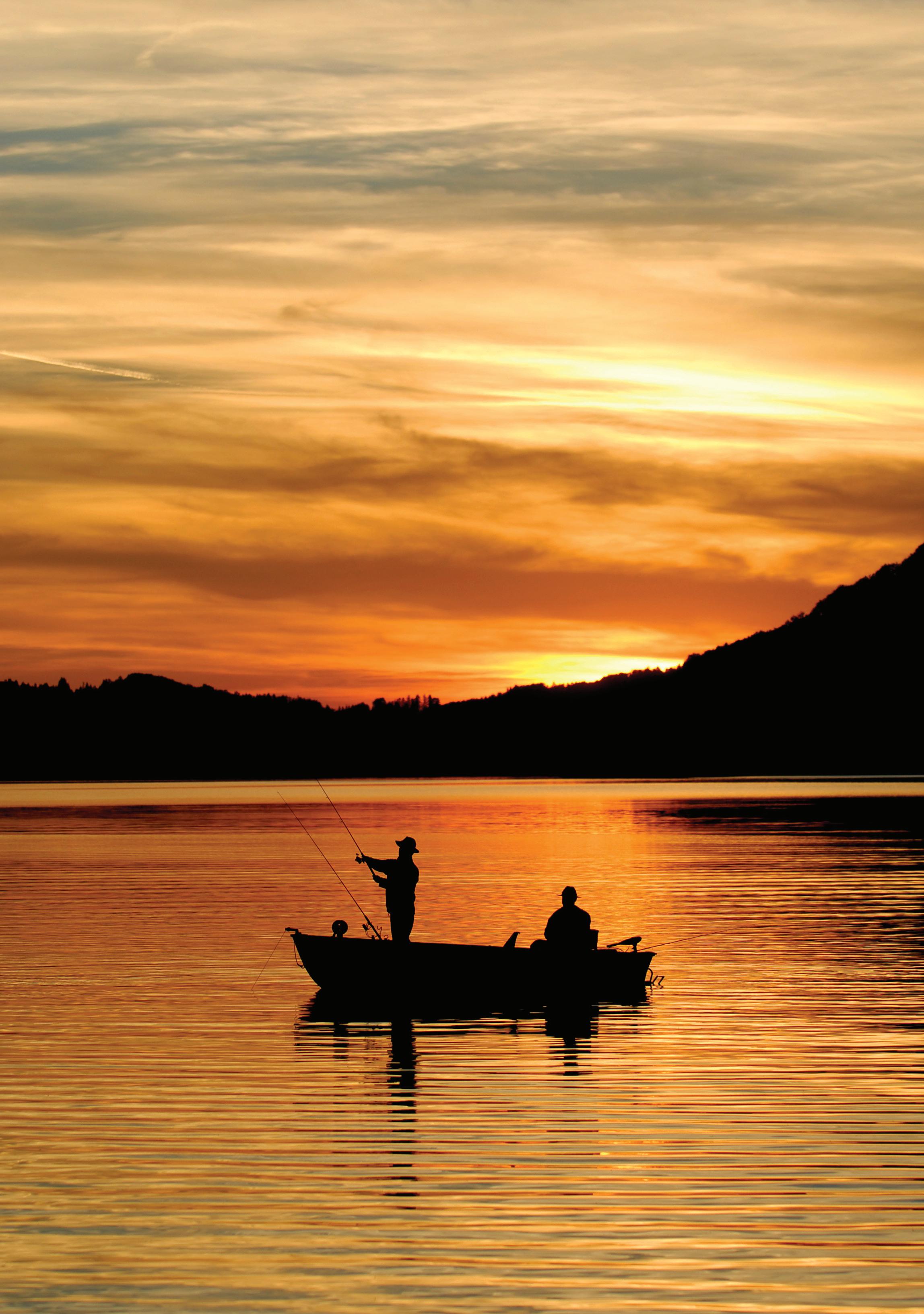 “Try a Ford Fender or a Wedding Ring in black or dark green,” said Ellison. He added that trolling is best in the area around the boat dock, right around the island, and in a shallower area just past the dock.