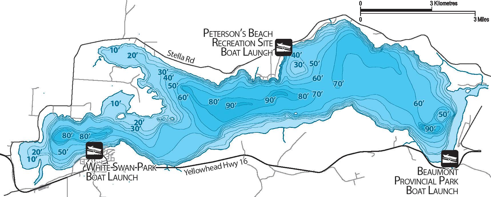 left at Lloyd Drive (about 60 km from Prince George) and shortly after the turnoff, there will be access points to the east end of the lake. If you continue along Lloyd Dr. to the end of the road, you will come out at Somerset states and there is a small access point that will bring you onto the lake, near the island on the south west side. The western section of the lake can be