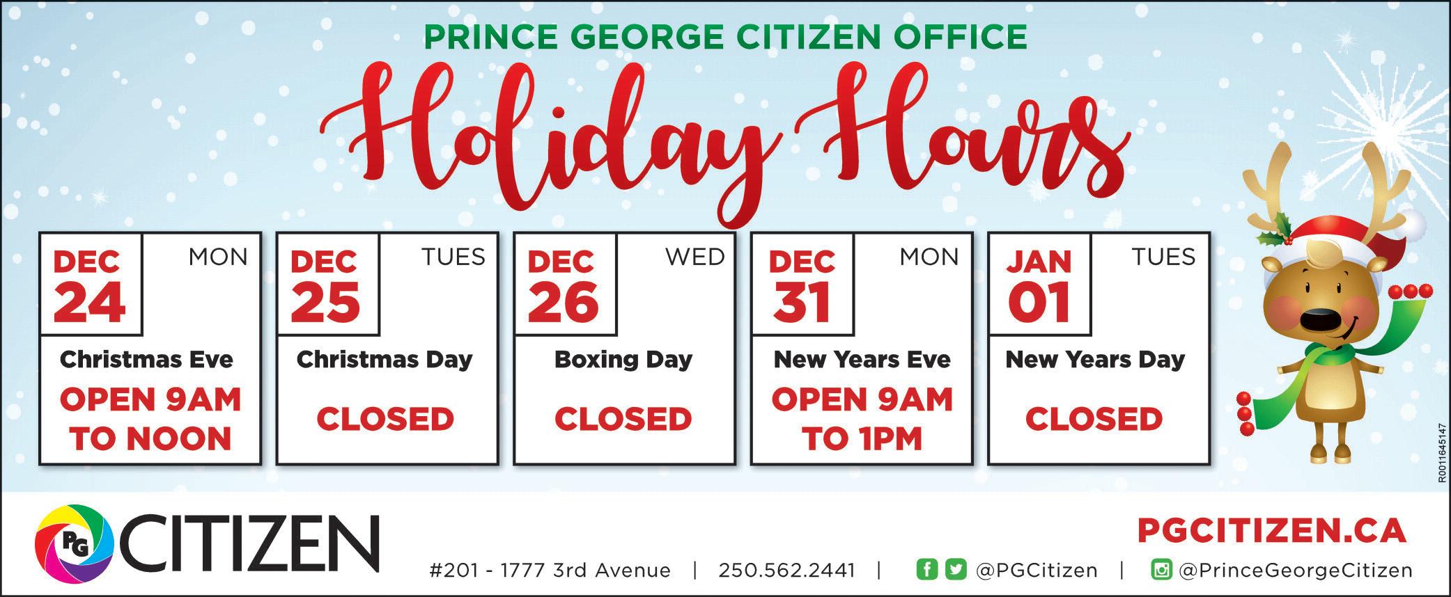 RCMP is Wed., Dec. 19. The application, which includes a criminal record check, is available online at www.ornpg. ca. Operation Red Nose is organized by the Rotary Club of Prince George – Nechako in partnership with ICBC and the Prince George RCMP. ORN will have 18 teams out on the road tonight to provide safe rides home to party-goers. To get a ride, call 250-9627433 between 9 p.m.-3 a.m. Clients must have a vehicle with valid B.C. license plates. All donations go towards youth and amateur sport organizations in Prince George.