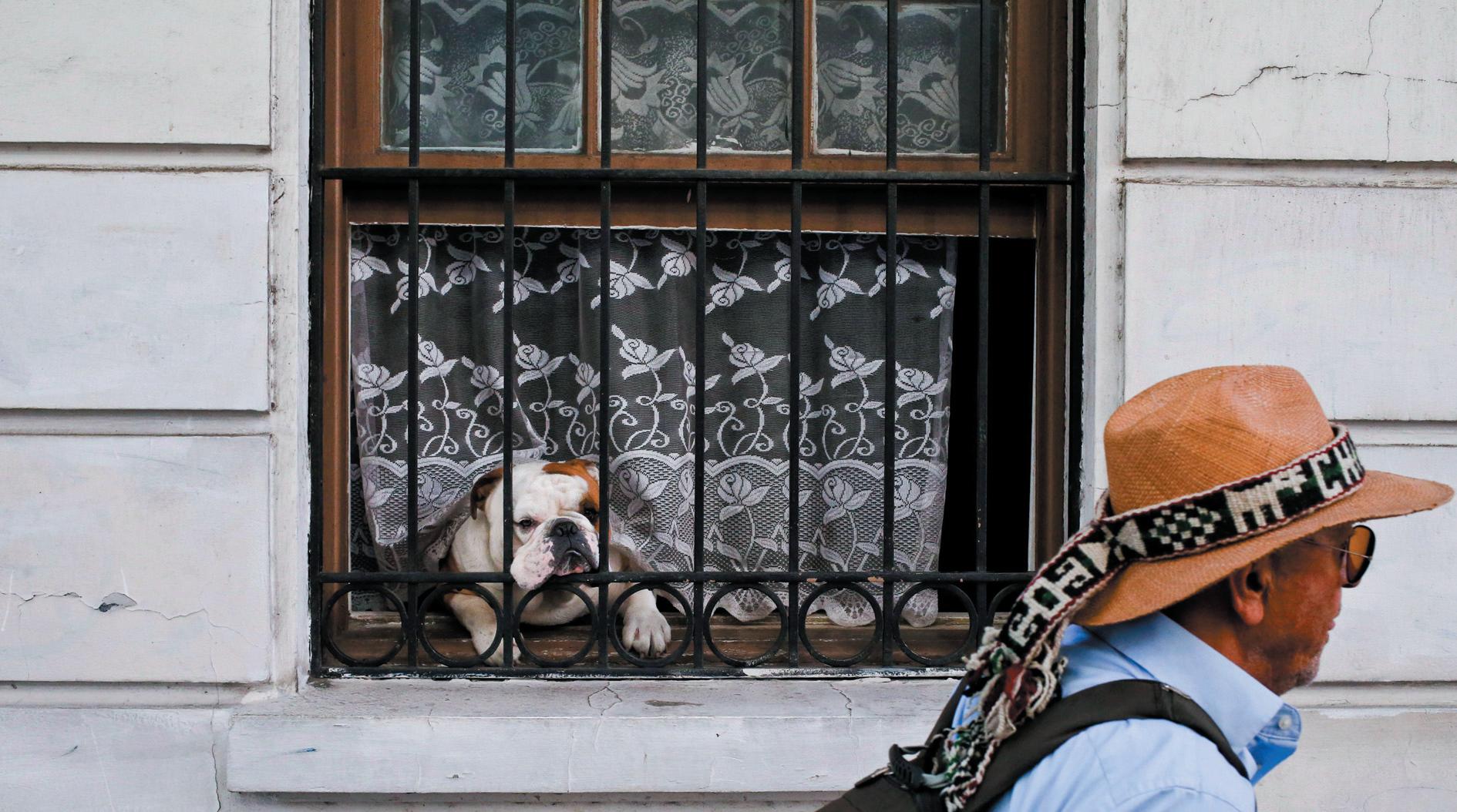 A bulldog looks out of the window of a home in Santiago, Chile, on Nov. 23. Sound transmission class (STC) measures a window’s resistance to high-frequency noises like dog barking, while outdoorindoor transmission class (OITC) measures resistance to low-frequency noise like traffic.