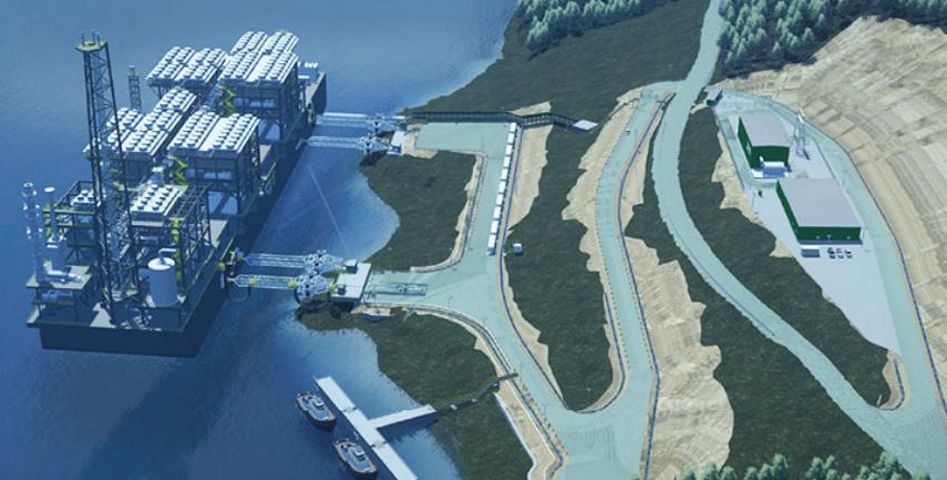 This artist’s rendition shows the proposed Cedar LNG floating natural gas export terminal in Kitimat.