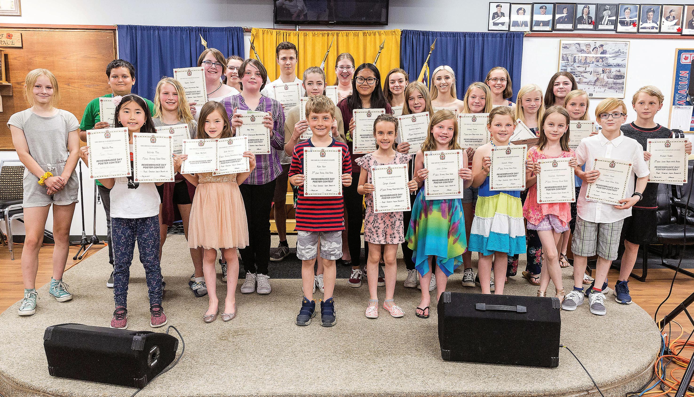 Winners from the Remembrance Day Poetry and Literary Contest pose for a photo on Sunday afternoon at the Prince George Legion after a ceremony where they received their awards.