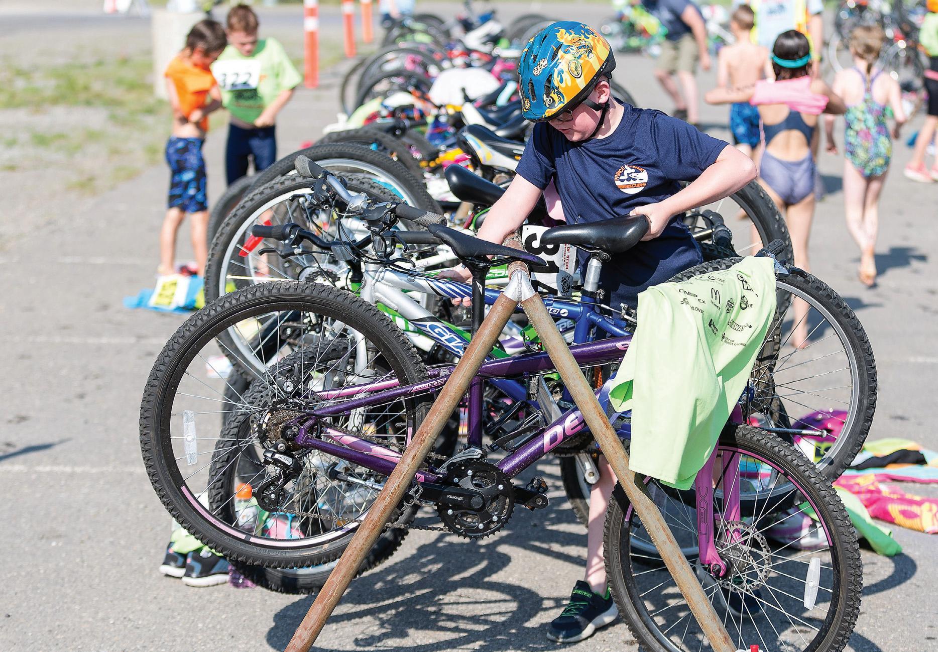 LEFT: Tony Wyssen leaps off the final obstacle on Saturday morning during Mega Bounce Run. Nine inflatable obstacles were set up on a five-kilometre course at Moran Park. The event was held in partnership with Big Brothers Big Sisters Prince George.