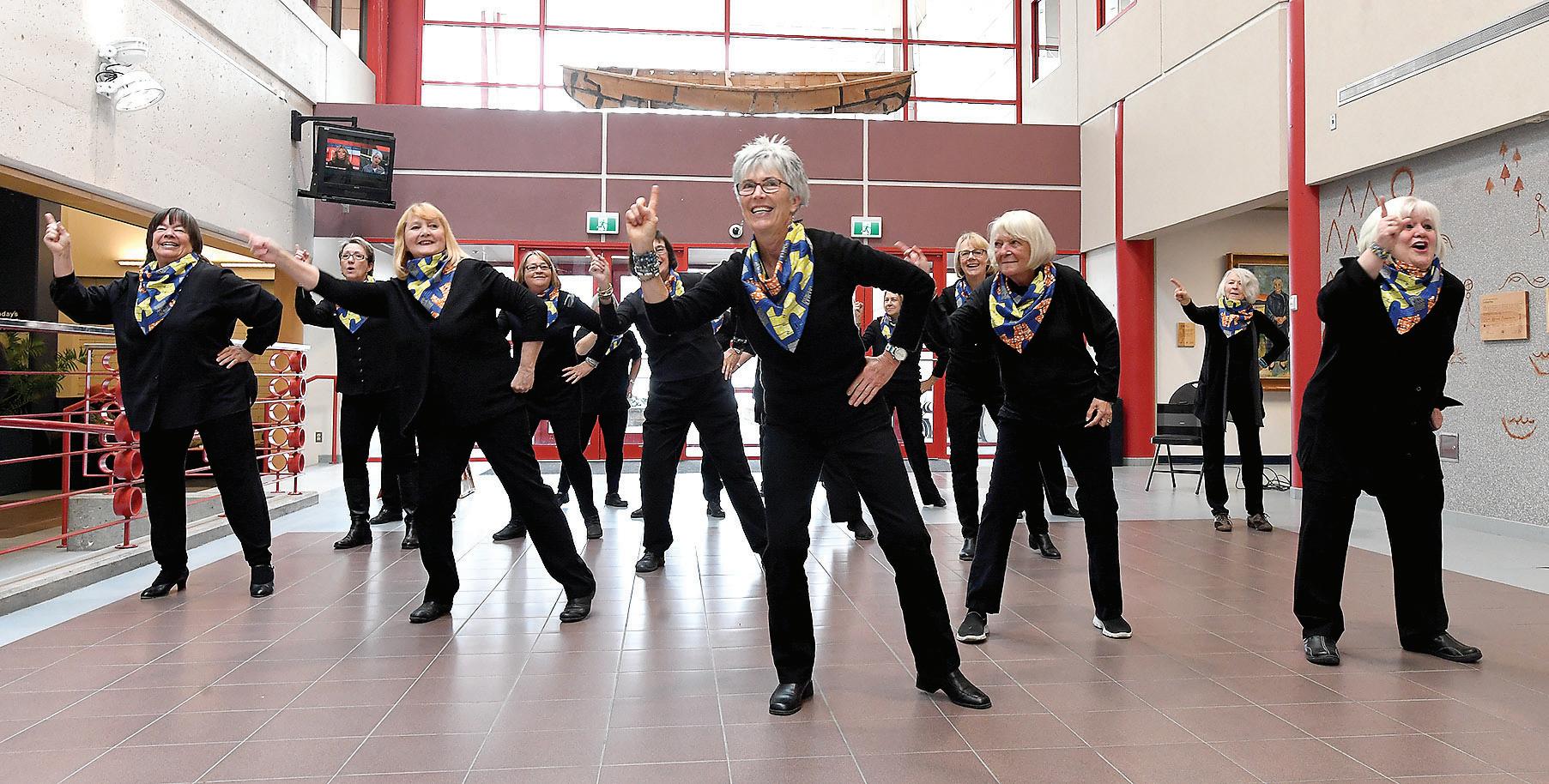 G2G PG, the local grandmothers to grandmothers group, danced in a Flash Mob at CNC Thursday afternoon, in preparation for World AIDS Day on Dec. 1. There were other similar flash mobs put on across Canada in honour of African grandmothers who are struggling to care for millions of orphaned children with HIV and AIDS. There are roughly 14 million orphaned children by AIDS in Africa. In some countries, up to 60 per cent of these children live in grandmother-headed households. The local grandmothers group, G2G PG, began three years ago with their first fund raiser, The Bring and Buy. Since then they have hosted African grandmothers visits, fashion shows, community sings, gold tournements, film and book launches, bead making and craft workshops, paint nights, guest speakers, flash mobs and potlucks. From all of those events G2G PG has been able to raise $29,000 for African grandmothers.