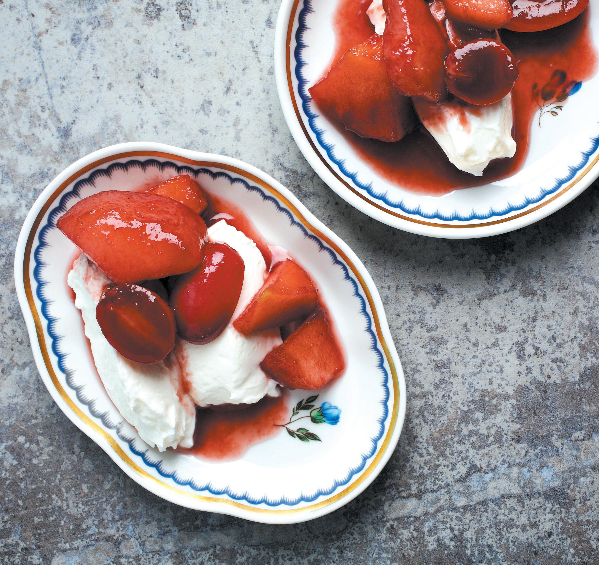 Fall fruit with port wine sauce, shown here chilled with Greek yogurt.