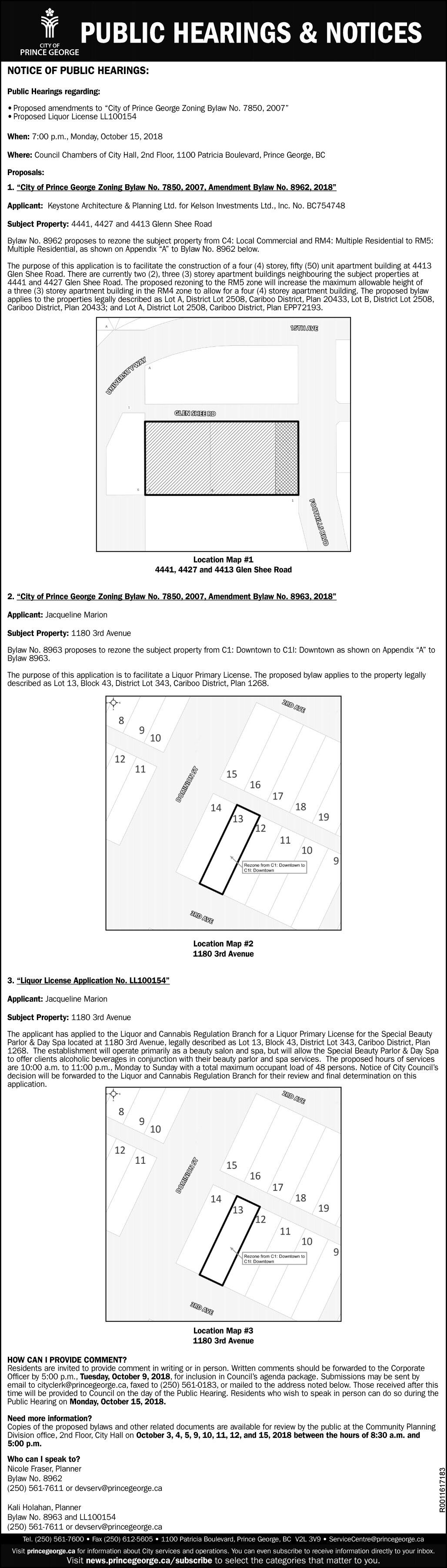 LEGALNOTICE SinclarGroupForestProductsLtd.has preparedamendment#20toourForestStewardship Plan(FSP)coveringoperationsinthePrinceGeorge NaturalResourceDistrict. InaccordancewiththeForestPlanningandPractices Regulationthisamendmentisavailableforpublicreview andcomment,fromOctober9th,2018toDecember 10th,2018.TheamendedFSPcanbeviewedatLakeland MillsLtdWoodlandsOffice,locatedat1385RiverRoad inPrinceGeorge,B.C,duringregularofficehours(8:00 AMto4:00PM).Ifaninterestedpartyisunableto reviewtheproposedplanduringregularbusinesshours, pleasecontactSinclarGroupForestProductsbyphone orinwritingtoarrangeasuitabletime.ToSchedulean appointmentorarrangeformoreinformation,contact AndrewPeacoshat250-617-1184.Writtencomments canbesubmittedbyemailto: andrew.peacosh@sinclar.comorletter,Attention: AndrewPeacosh,LakelandMillsLtd.1385RiverRoad, PrinceGeorge,B.C.V2L4V4.
