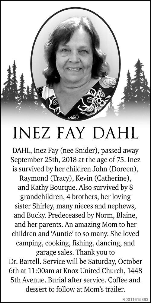 We are sad to announce the passing of long time resident, Sharon Dorothy (Belsham) Gordon: born in Prince George July 31, 1948, died PG Hospice Oct 1, 2018.