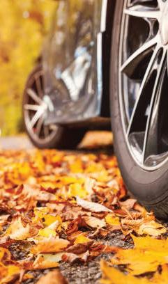 Fallen leaves can be as slick as ice when wet. They also hide potholes, road markings, or other hazards. Drive slowly through leaf-covered roads and avoid hard braking or quick acceleration. Clearing leaves from your driveway and vehicle can also prevent slipping and improve safety.